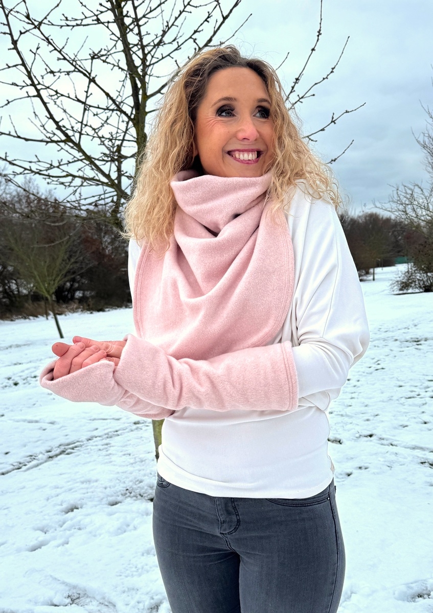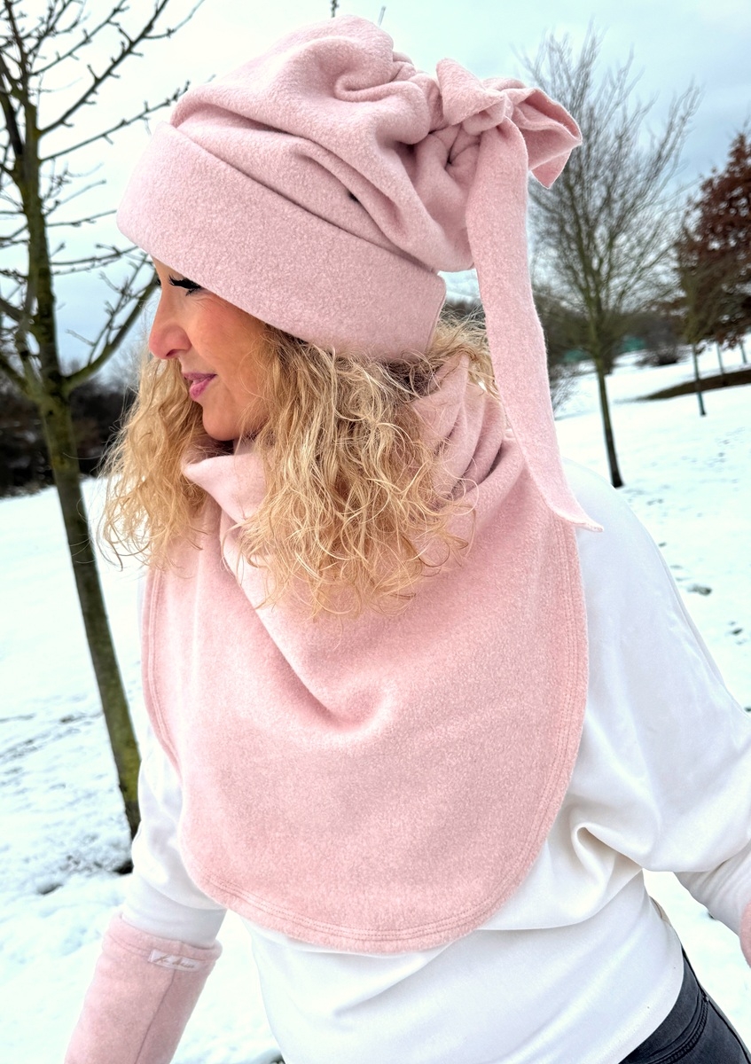 Nákrčník s rolákem a zadním dílem, aby netáhlo na krk :) je ušitý z hřejivé 100% fleecové bavlny.