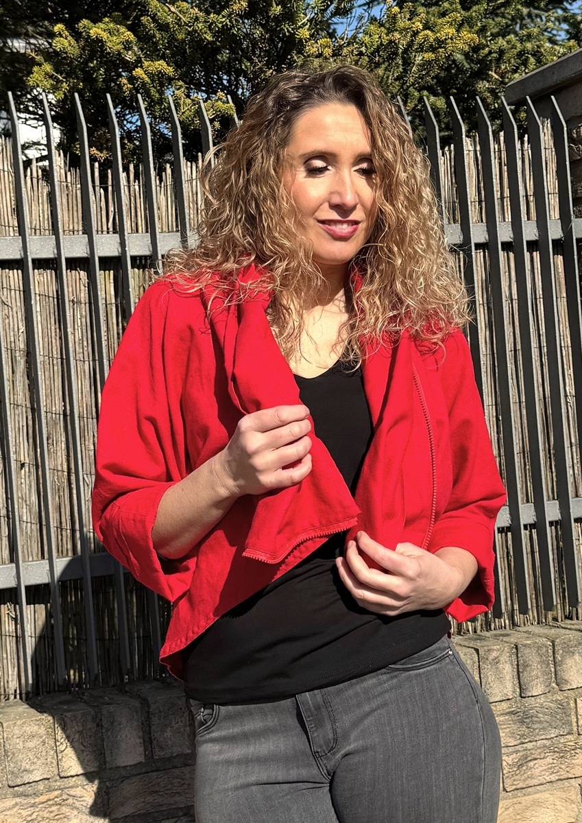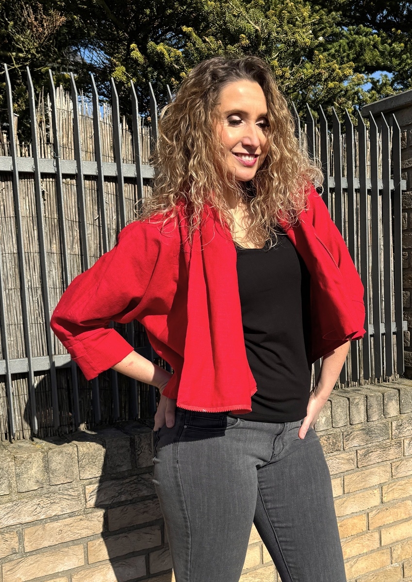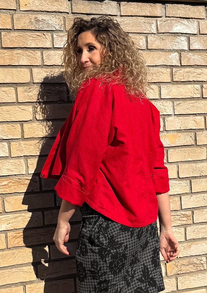 Kabátek netopýr lněný červený
