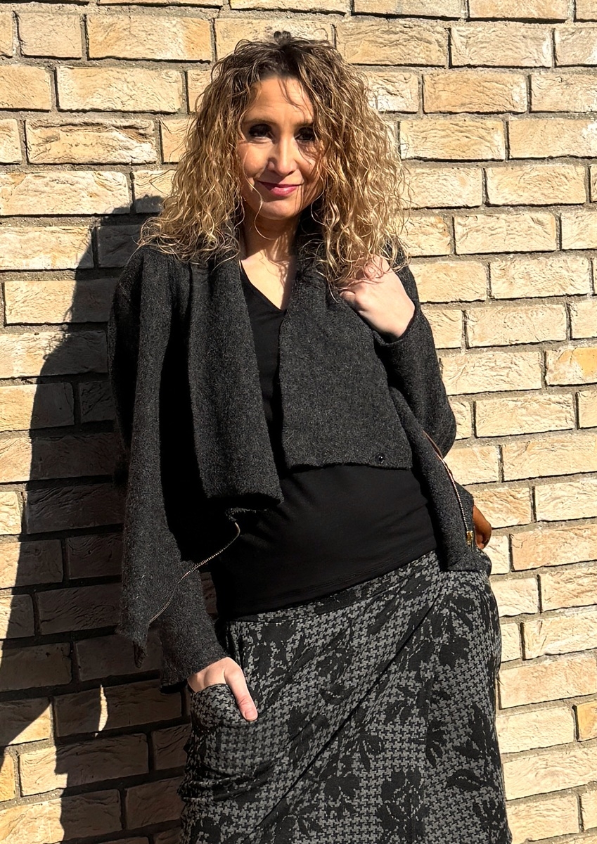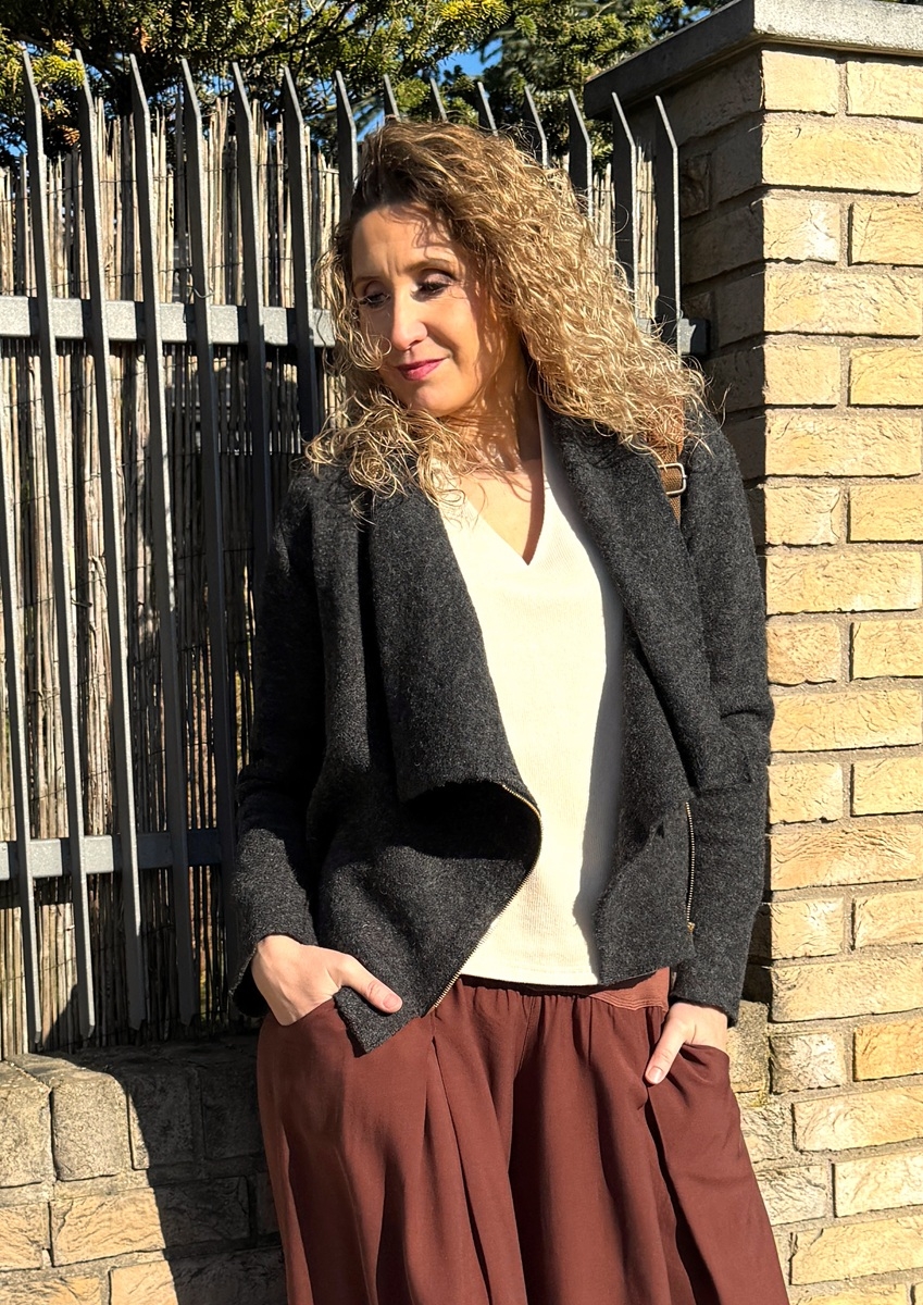 Pohodlný křivák je ušitý z pařené vlny. Zapínání na zip. Bez podšívky.