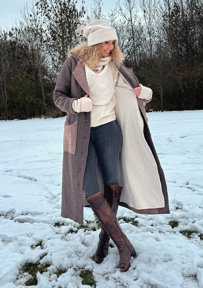 Zimní kabát pařená vlna hnědý cik cak zateplený