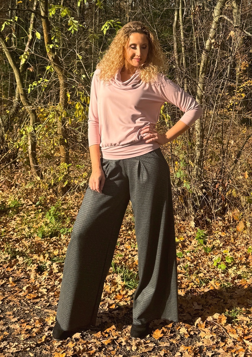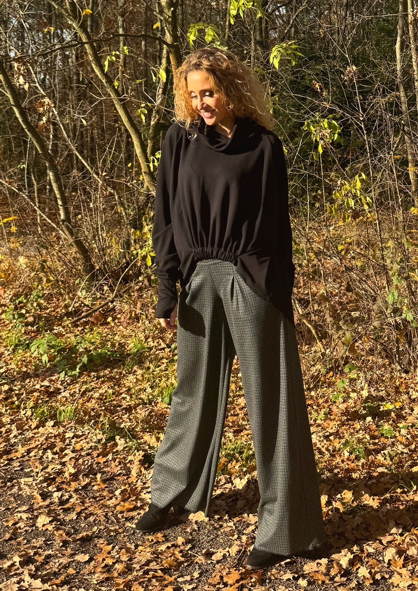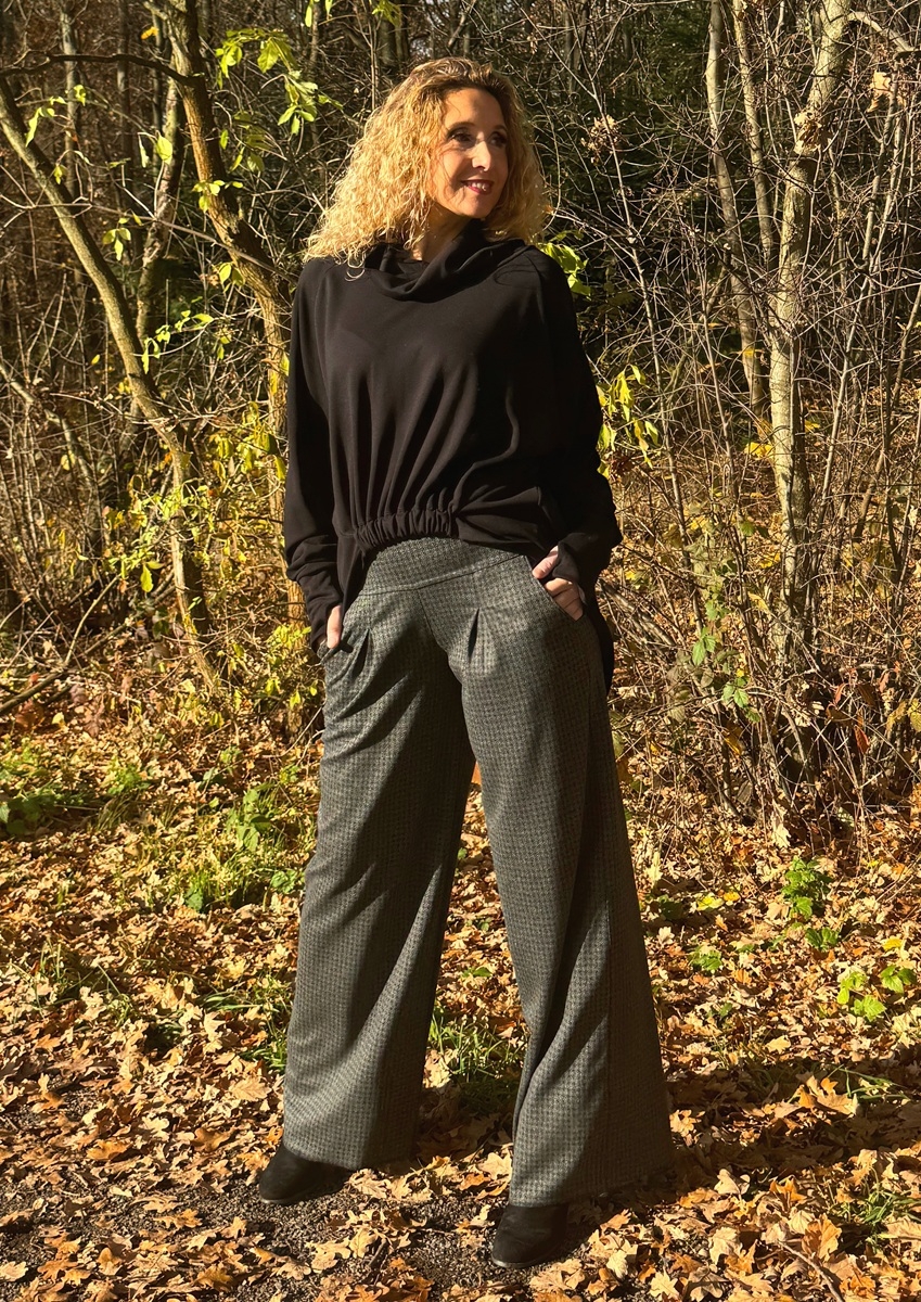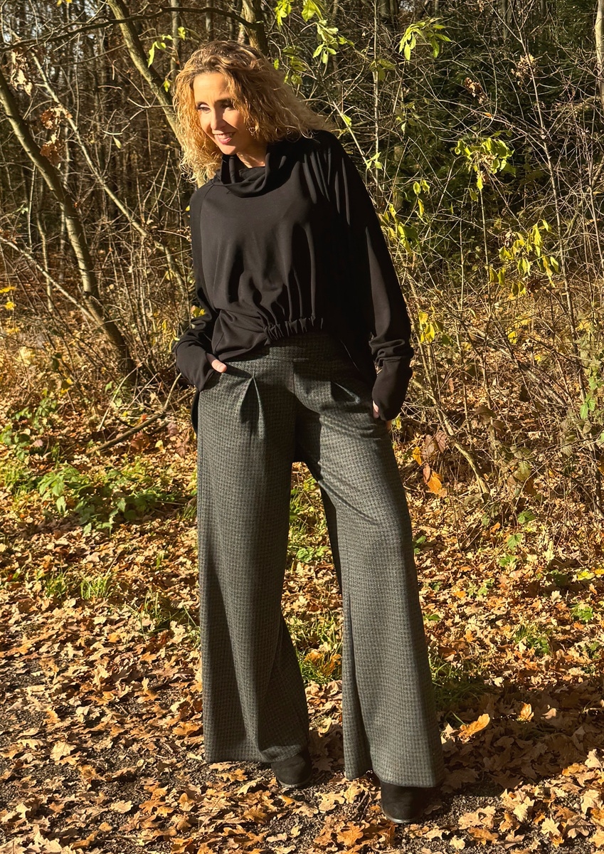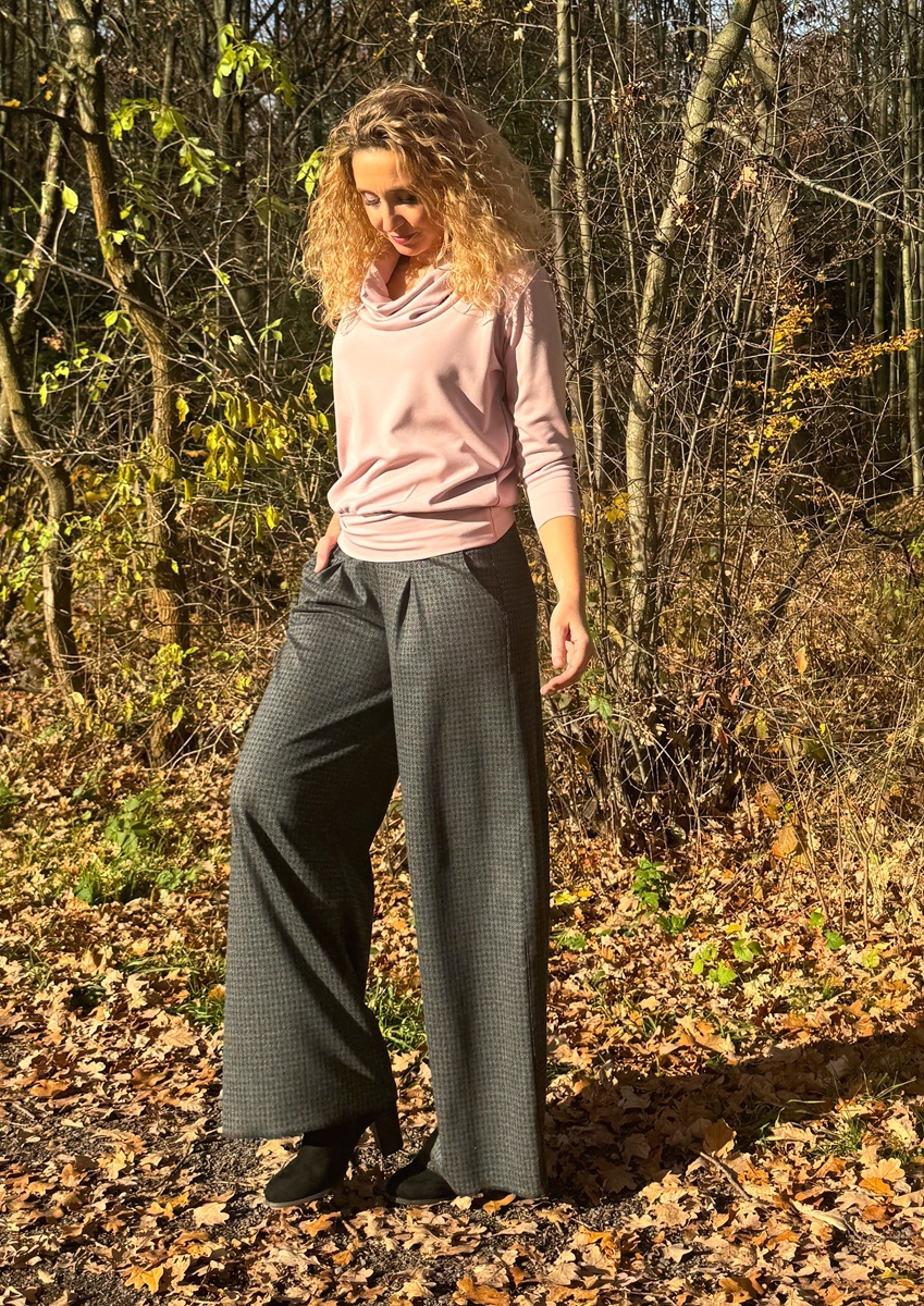 Pohodlné široké kalhoty jsou ušité ze středně silného úpletu - materiál (viskóza/polyester/elastan) je vhodný na podzimní období.