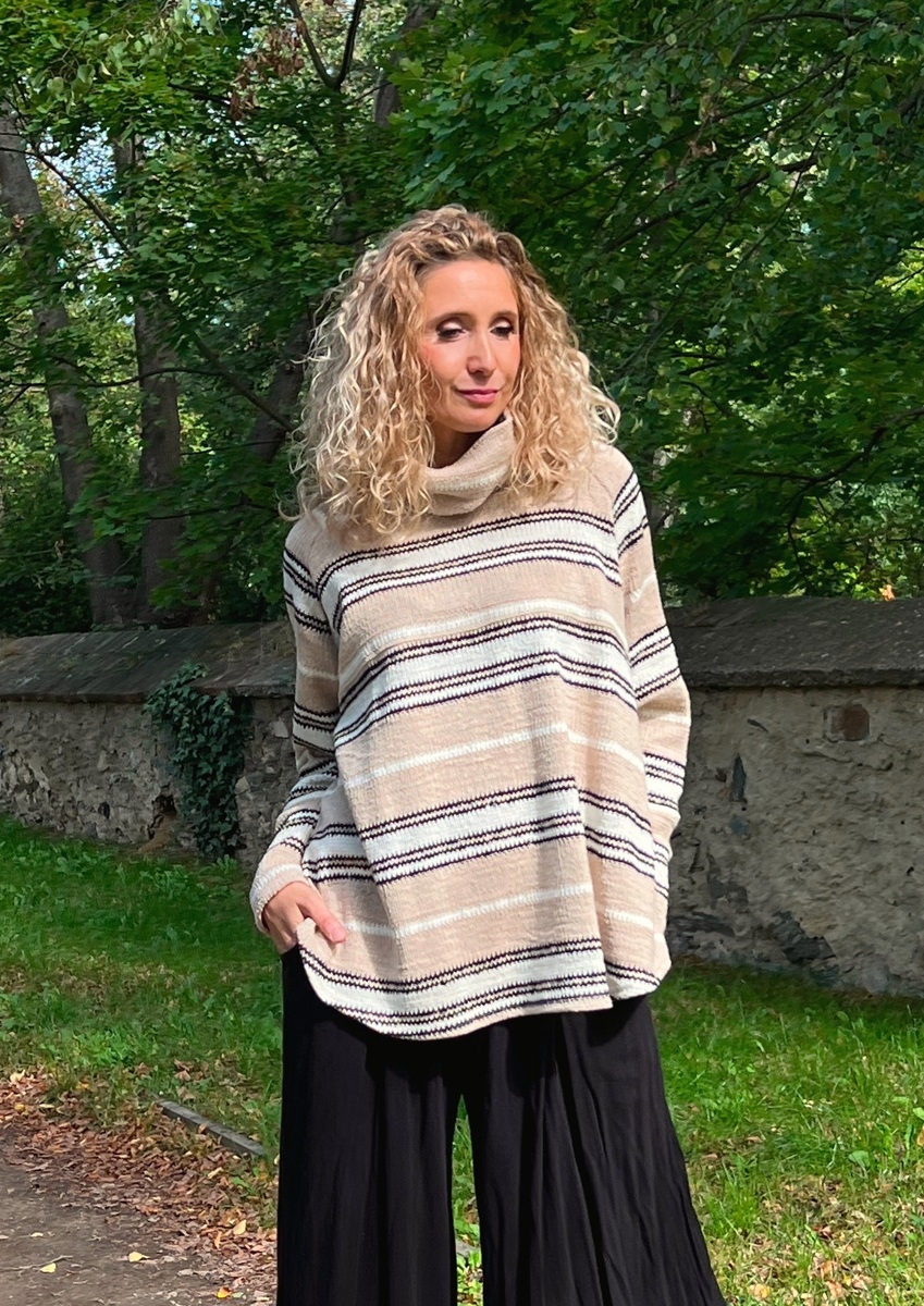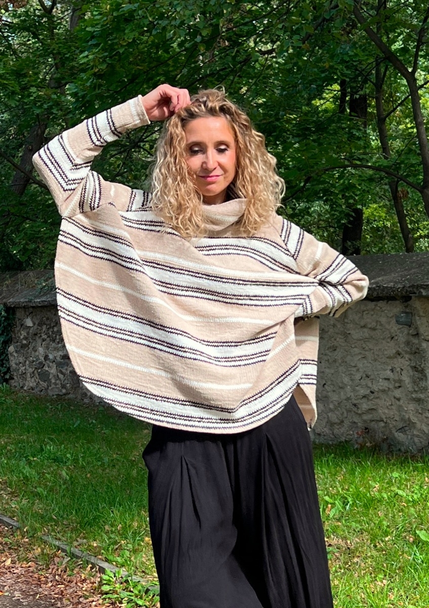 Pruhované rolákové pončo