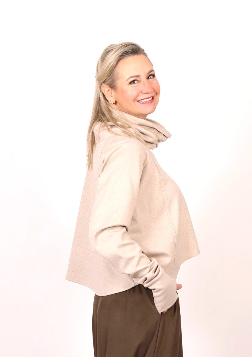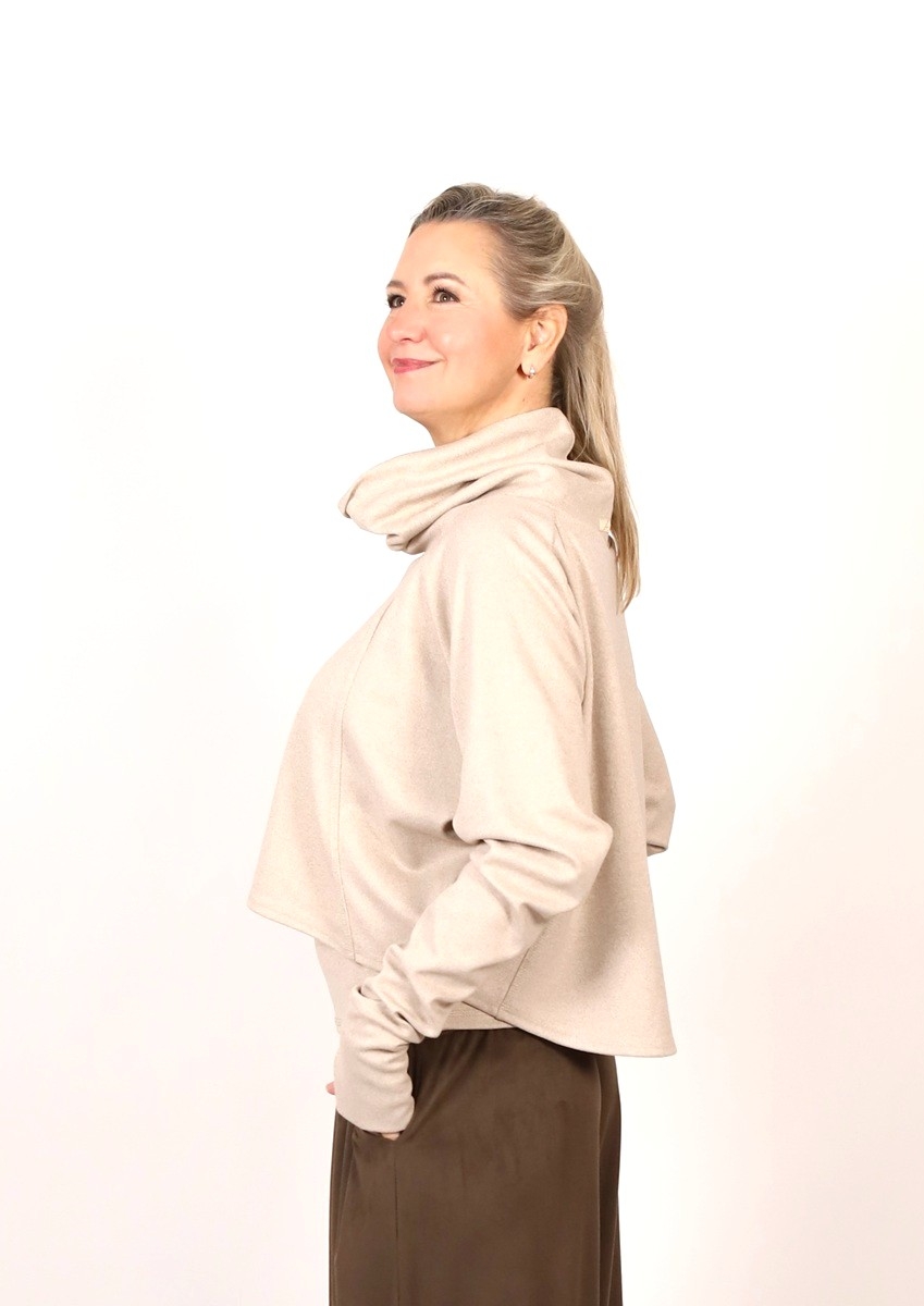 Volný rolák je ušitý ze směsového úpletu (68%vis/28%pes/4%ela).