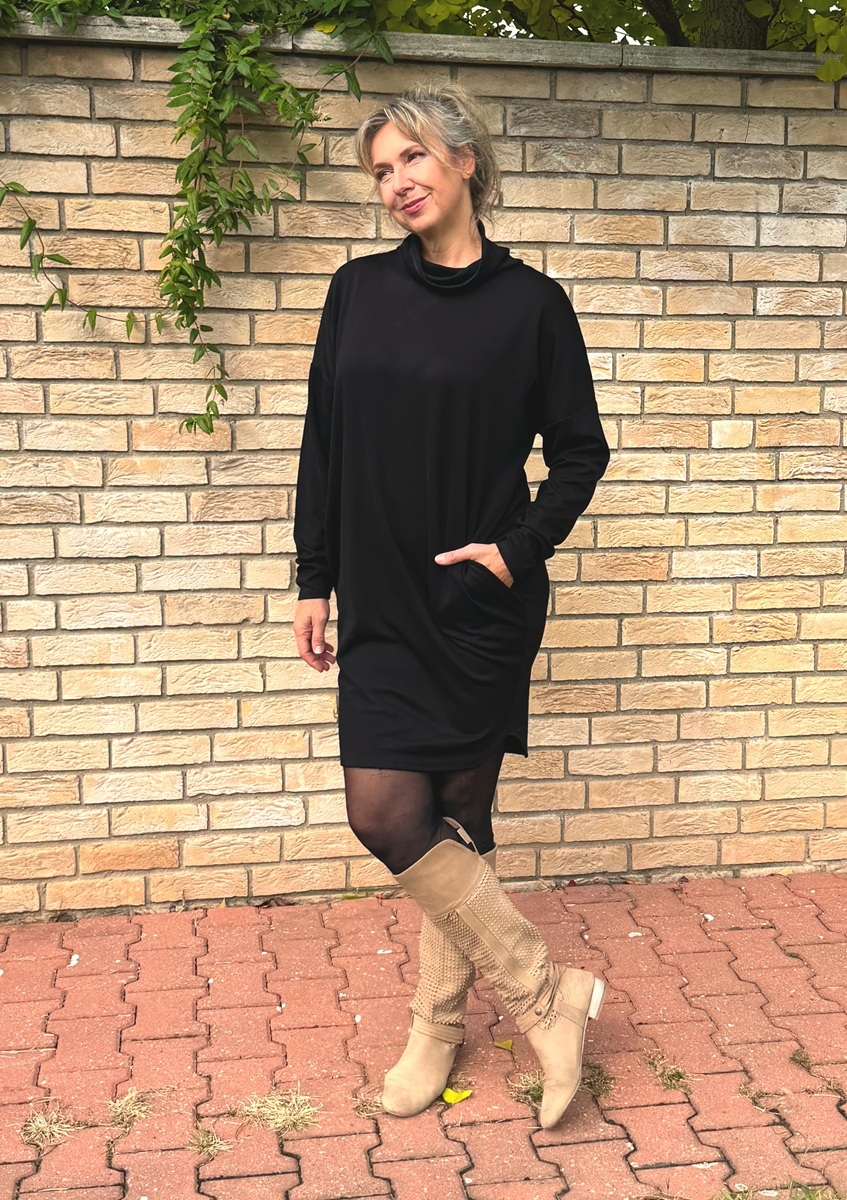 Rolákové šaty ze středně silného úpletu viskóza/polyester/elastan.