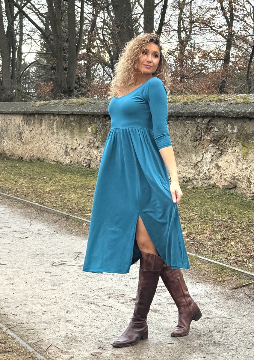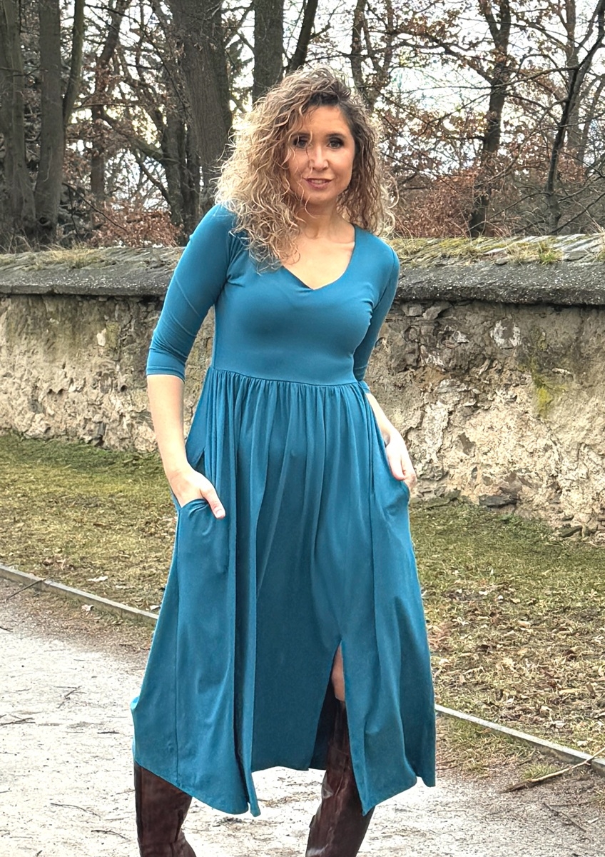 Šaty s rozparky perolejové