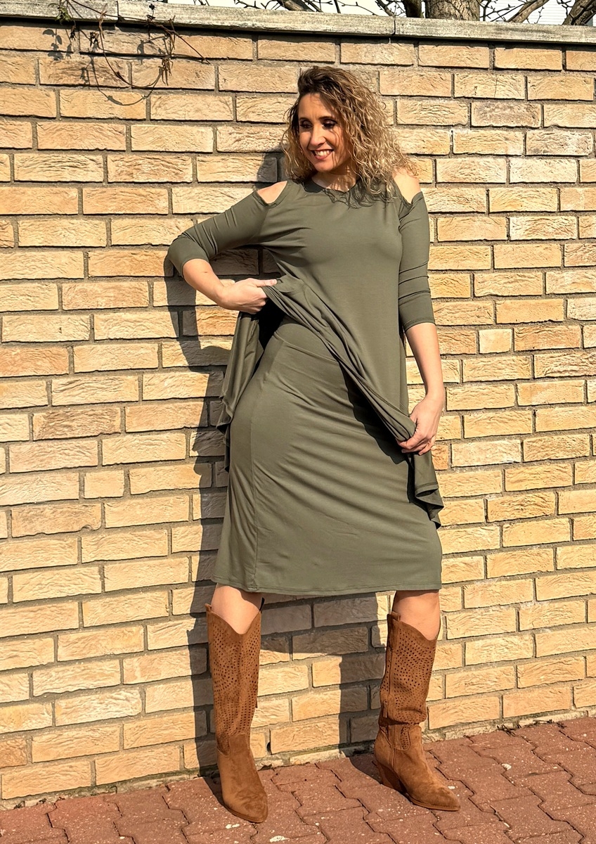 Zvonové dvoudílné šaty khaki