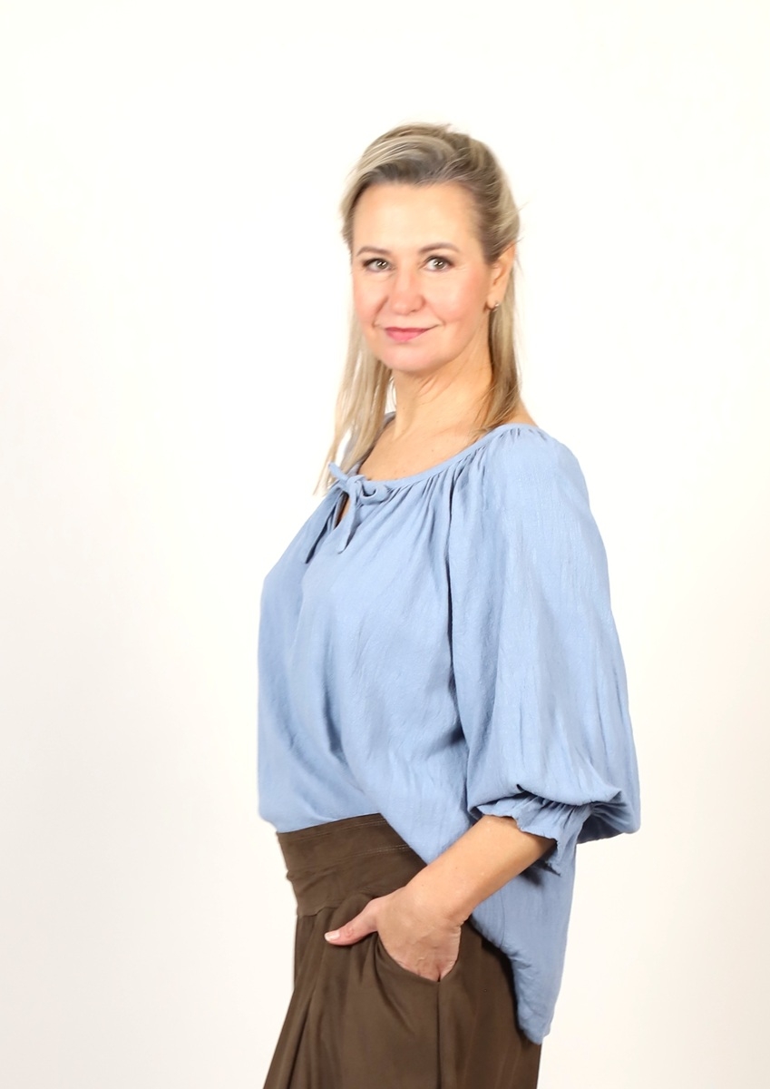 Volný top s pasem světle modrý
