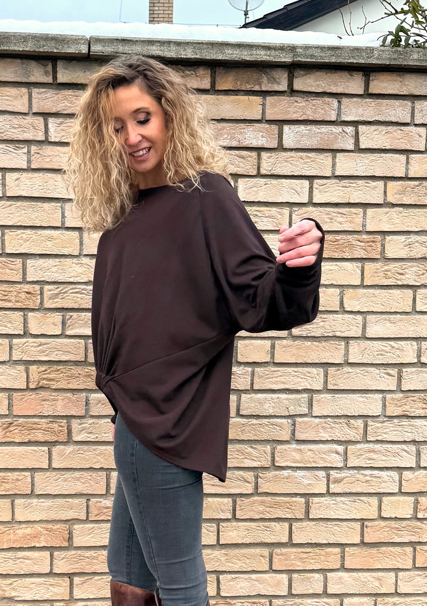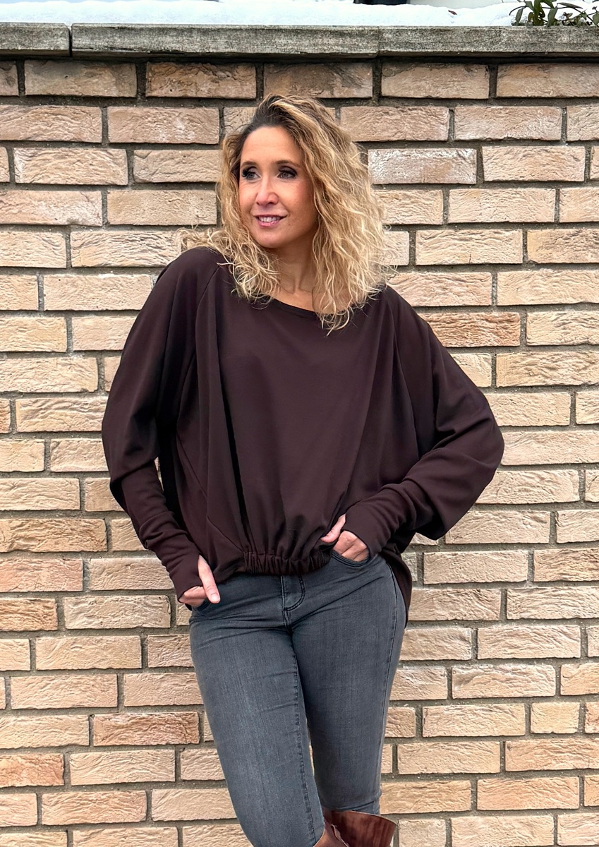 Volná tunika s lodičkovým výstřihem je ušitá ze směsového úpletu (68%vis/28%pes/4%ela).