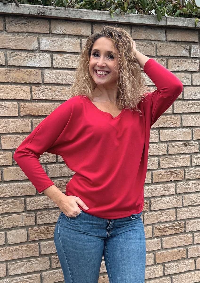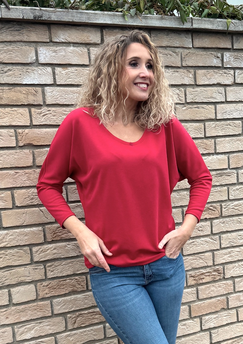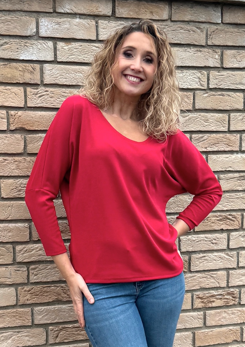 Tunika volného netopýřího střihu s výstřihem do V je ušitá ze středně silného  směsového úpletu (68%vis/28%Pes/4%ela).Rukávy jsou ve 3/4 délce.