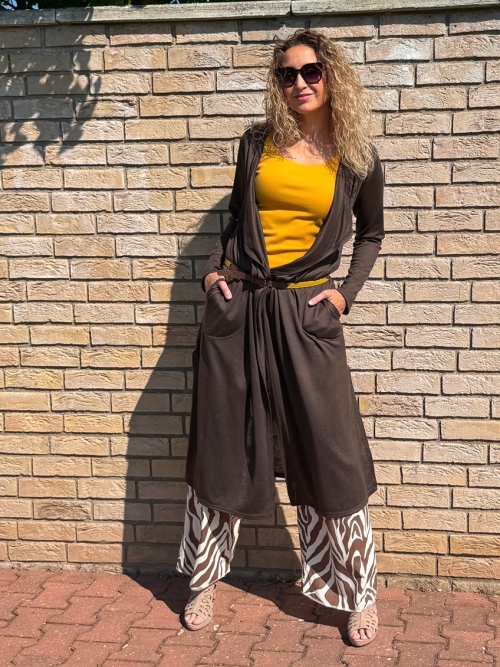 Zimní kabát pařená vlna hnědý cik cak zateplený