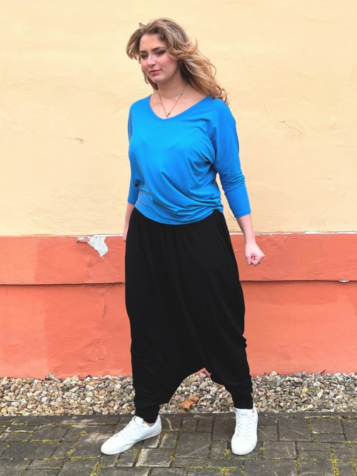 Volná tunika s netopýřimy rukávy z úpletu viskóza/elastan.