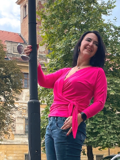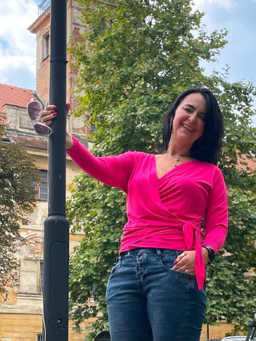 Tunika s volnými rukávy a zavázáním v pase z úpletu viskóza/elastan.