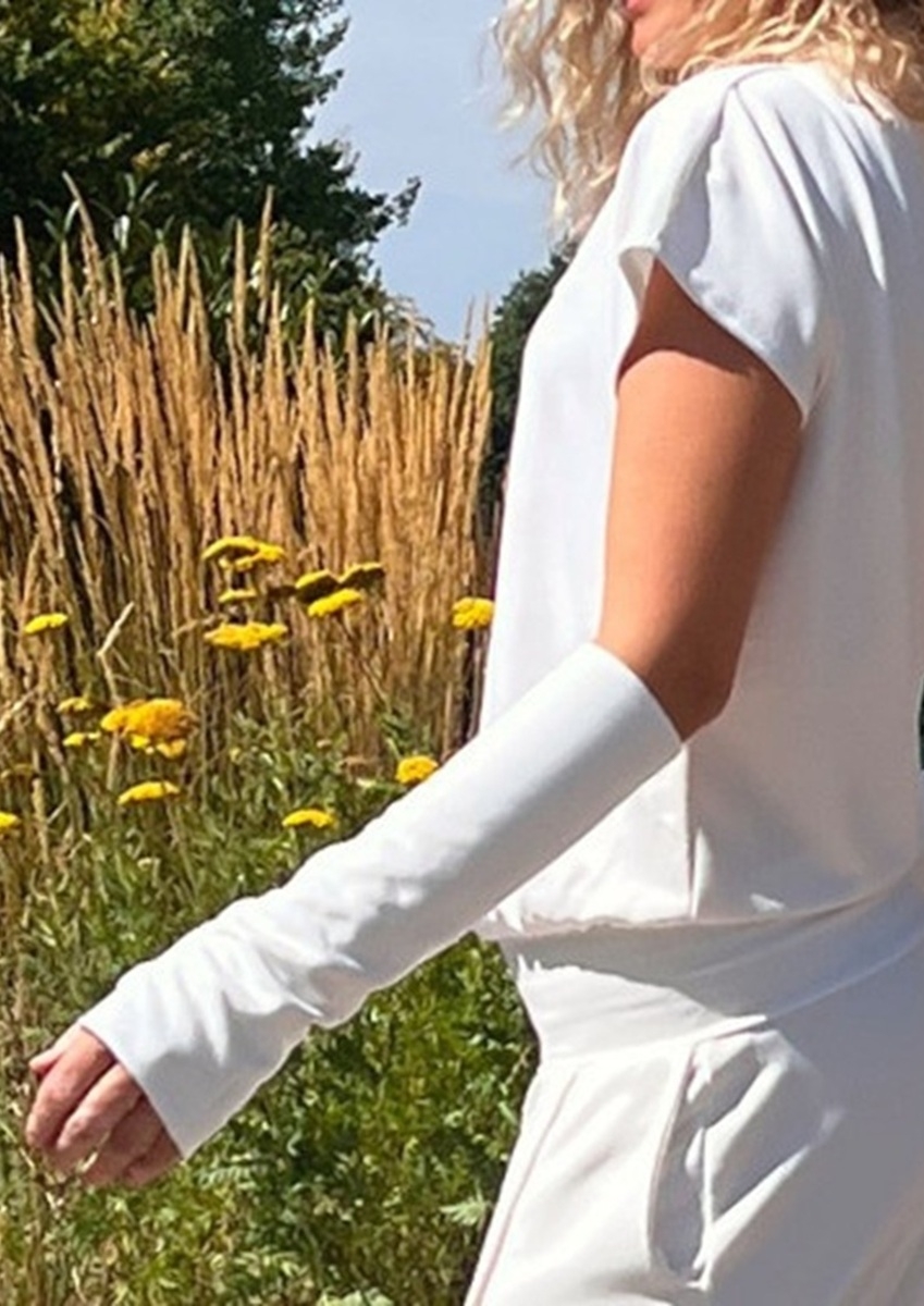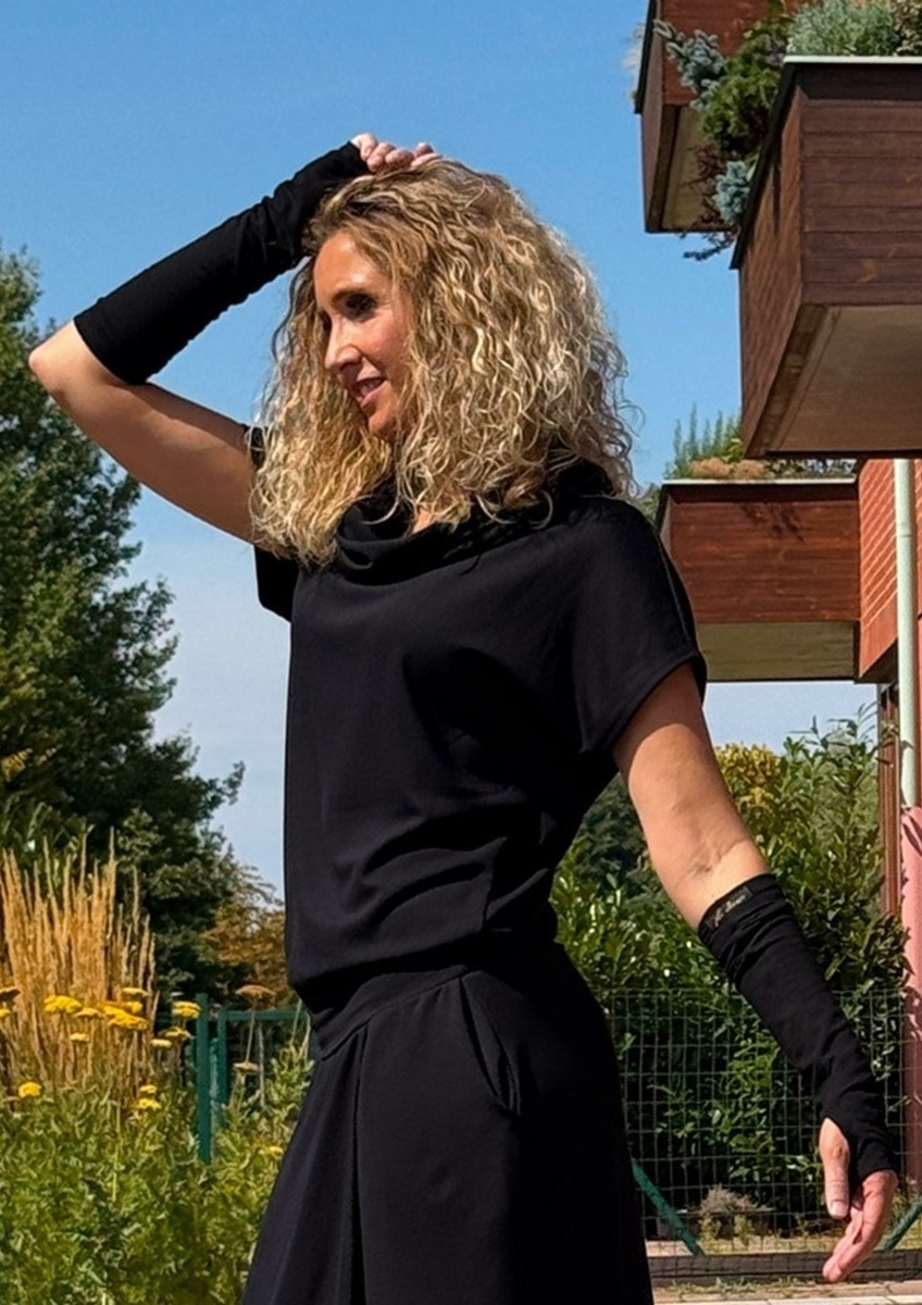 Nátepníky jsou ušité ze středně silného úpletu viskóza/pes/elastan.