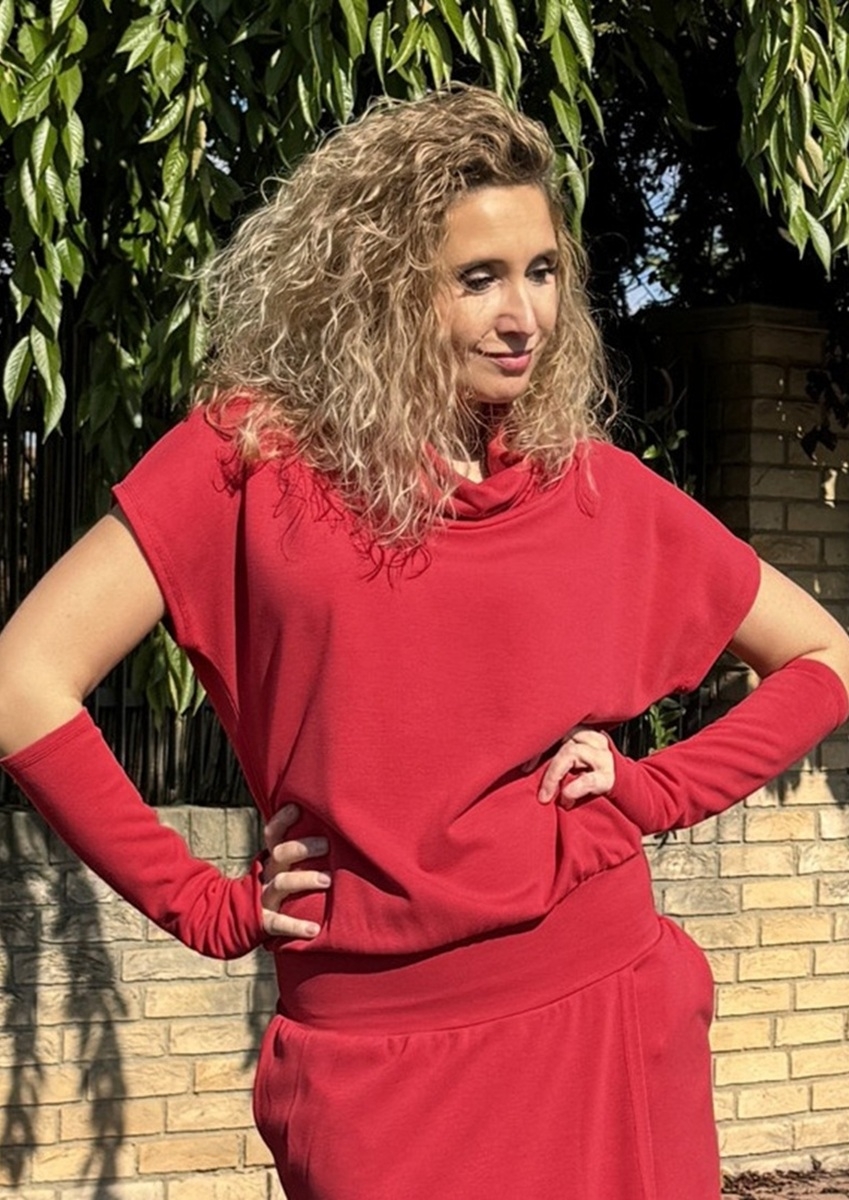 Červené rolákové pončo
