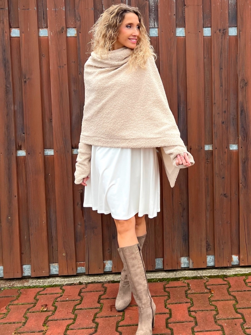 Pončo s nátepníky jsou ušity ze syntetického plyše.