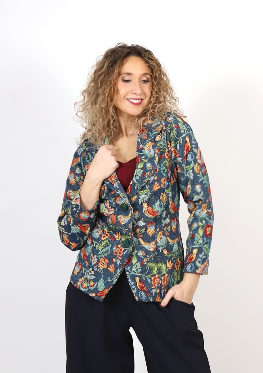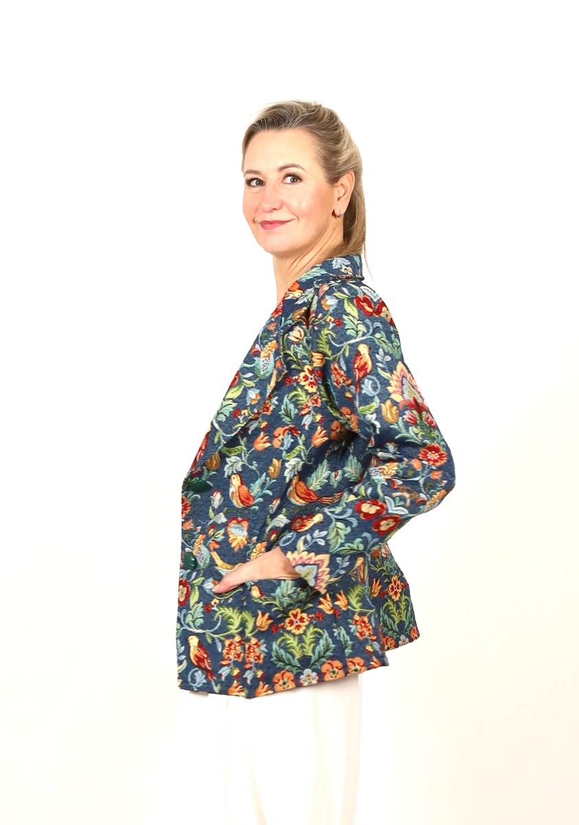 Sako je ušité z pevného žakárového materiálu. (50%ba/50%Pes)