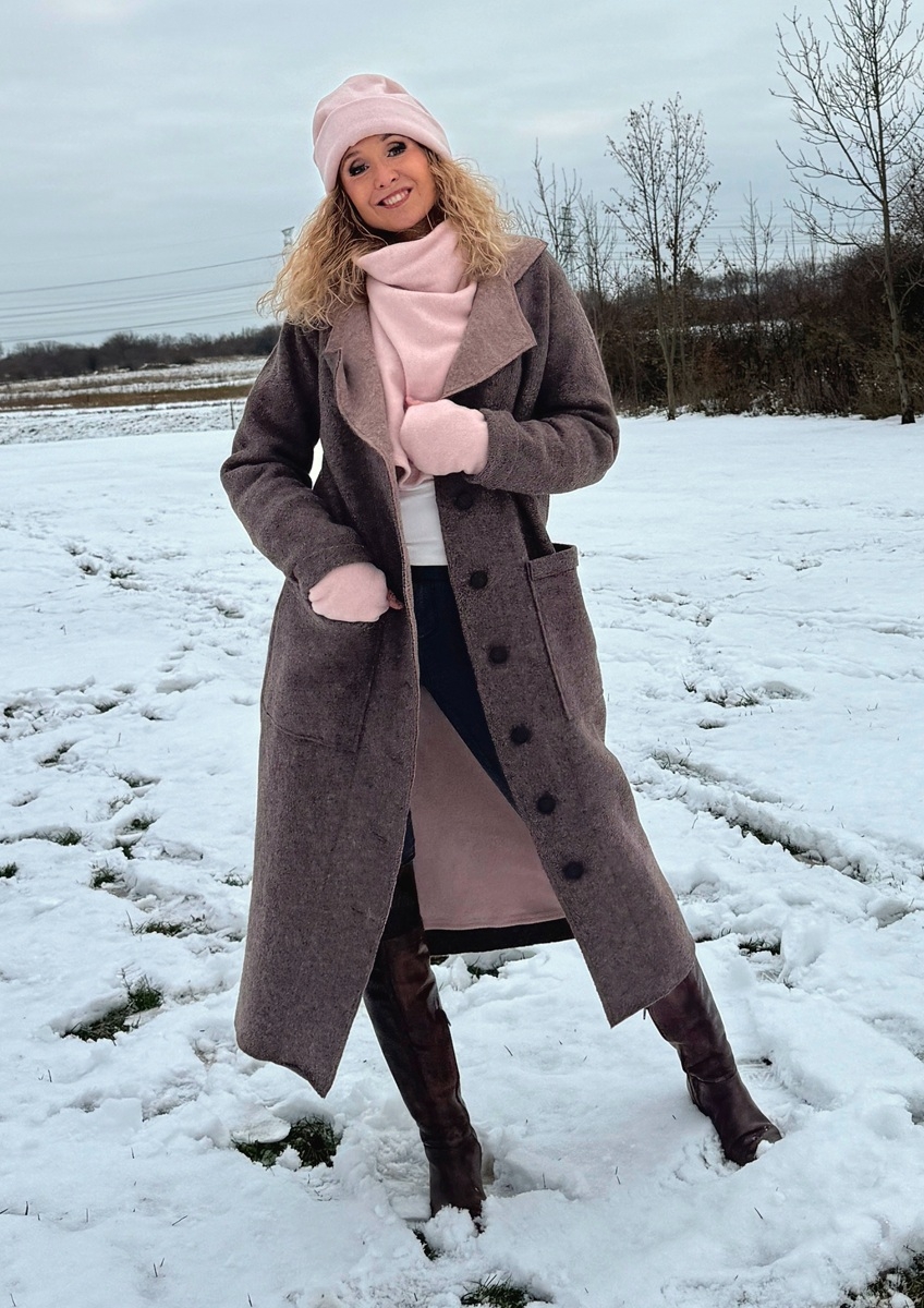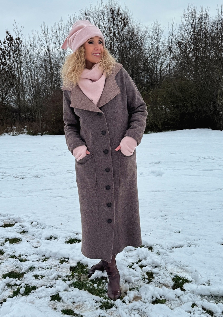 Zimní kabát pařená vlna tmavší hnědá zateplený