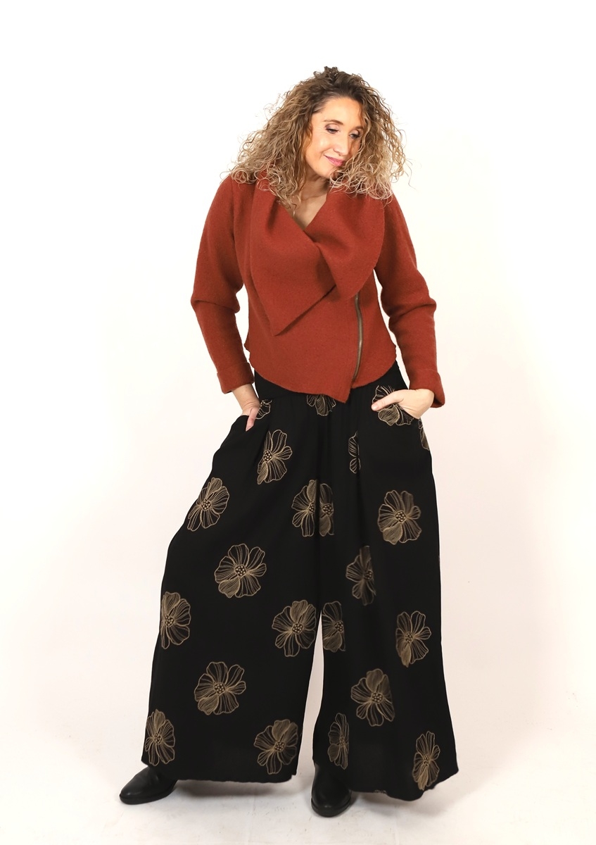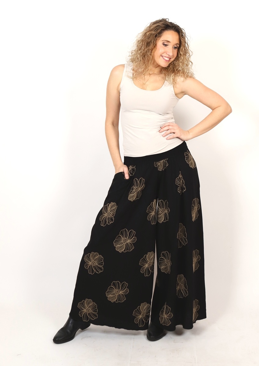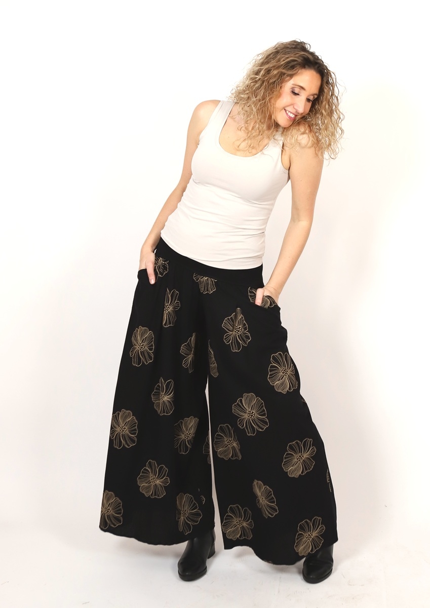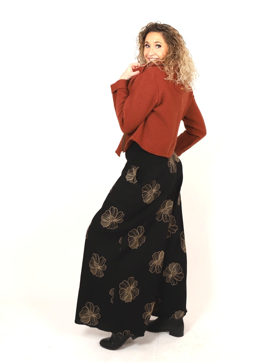 Kalhotová sukně dlouhá černá s květy
