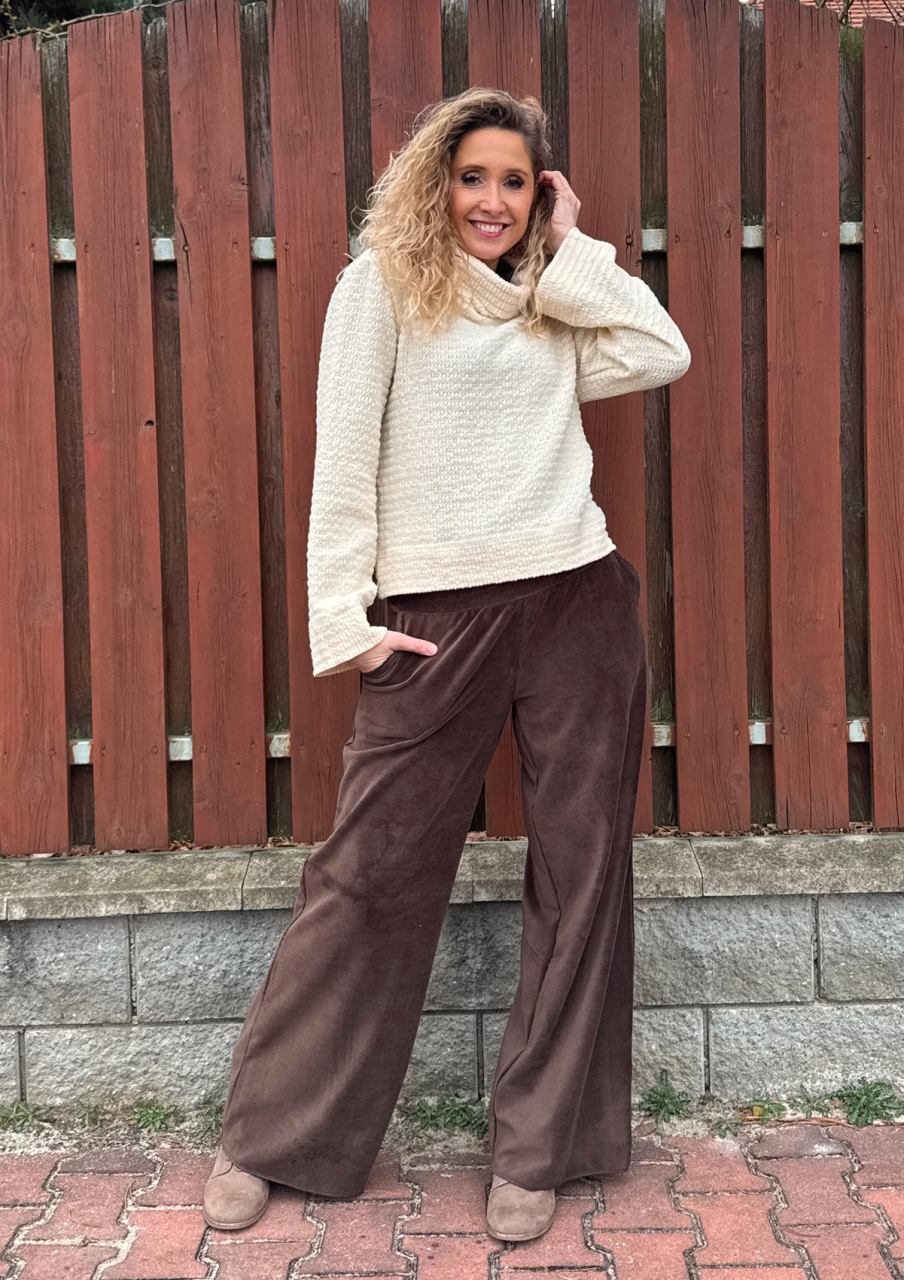 Pohodlné široké kalhoty jsou ušité z příjemného úpletu se vzhledem manšestru (bavlna/polyester/elastan).