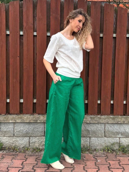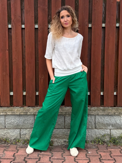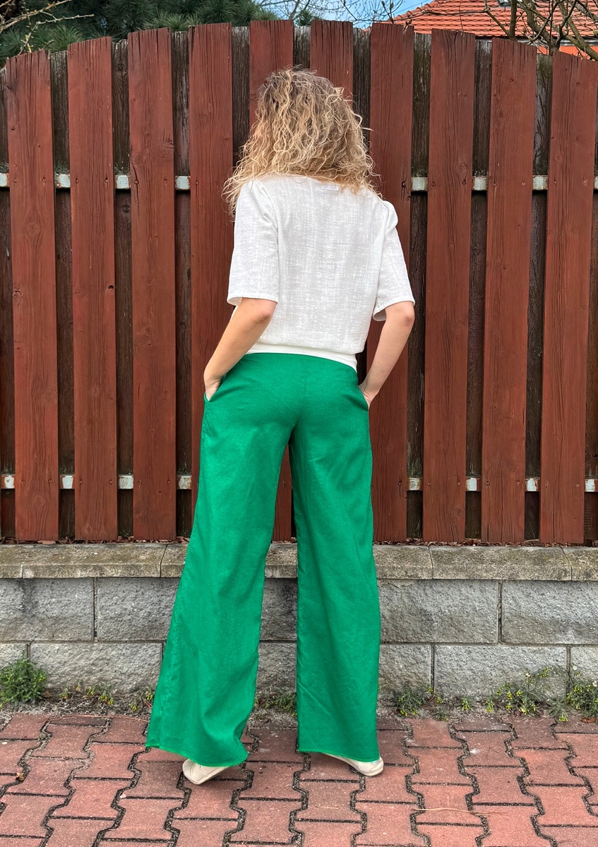 Volné kalhoty - lněné zelené