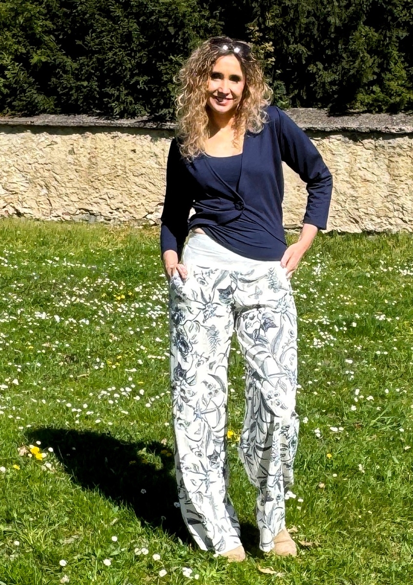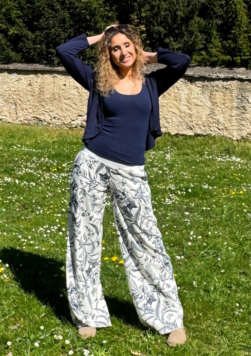 Pohodlné vzdušné kalhoty jsou ušité z krásného směsového materiálu viskóza 80%, len 20%.