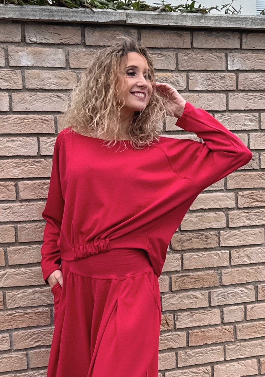 Volná tunika s lodičkovým výstřihem je ušitá ze směsového úpletu (68%vis/28%pes/4%ela).