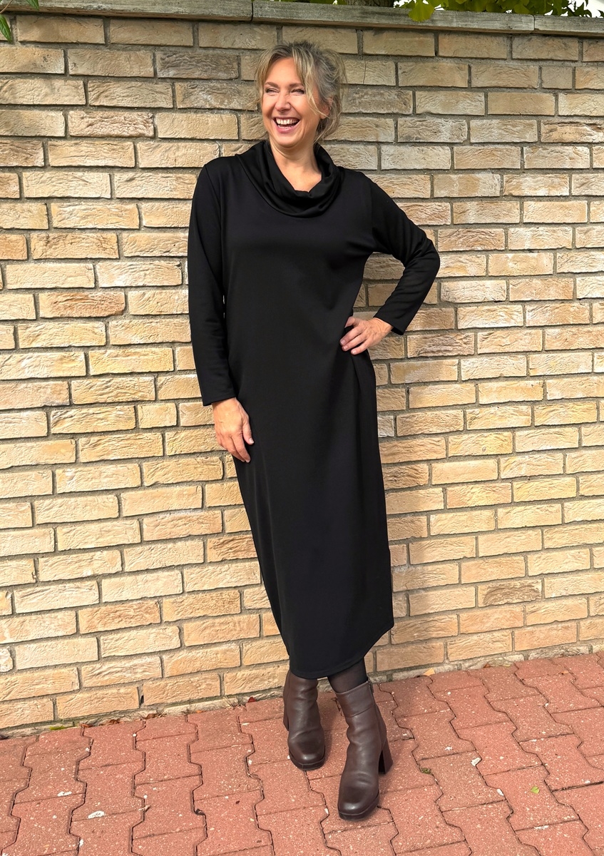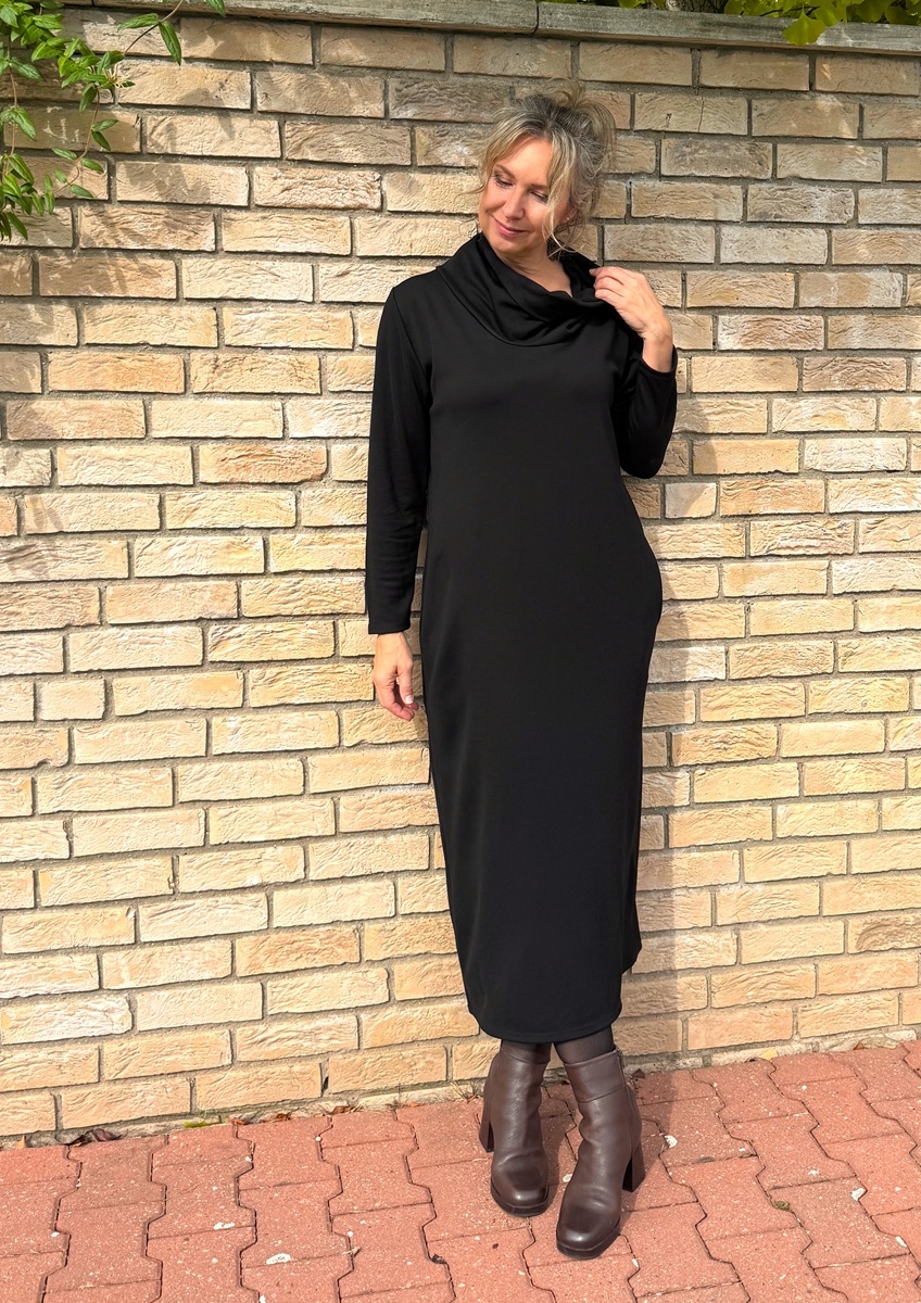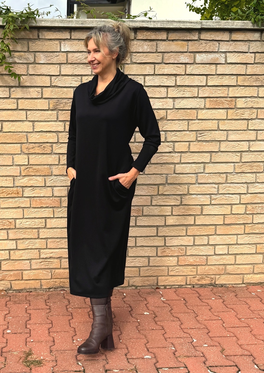 Černé šaty s volným rolákem dlouhé
