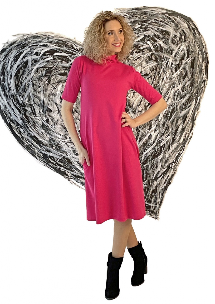 Pohodlné šaty z úpletu viskóza/polyester/ elastan s krátkým rukávem a roláčkem.
