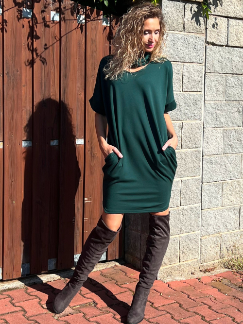 Rolákové šaty krátké tmavě zelené s výstřihem