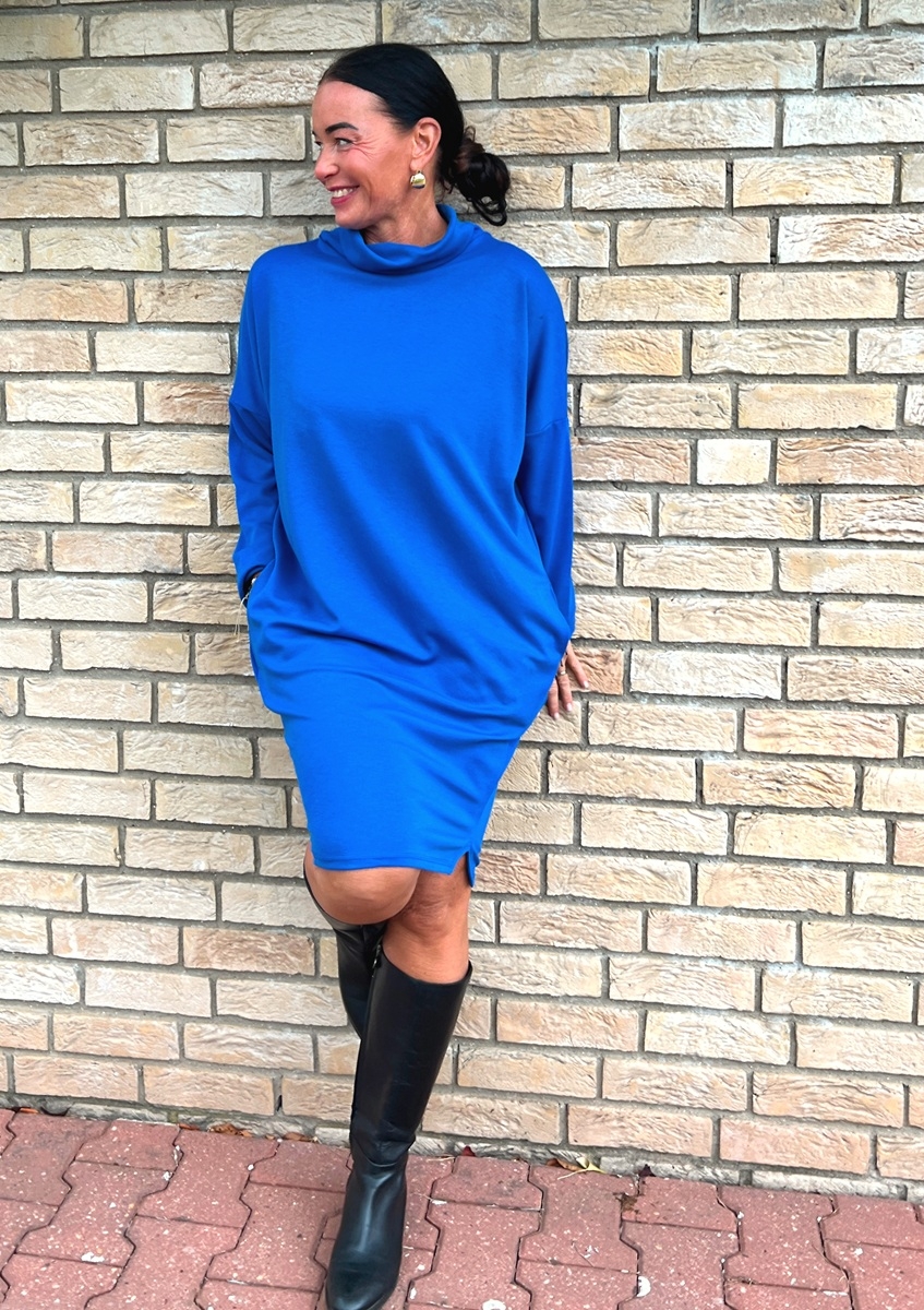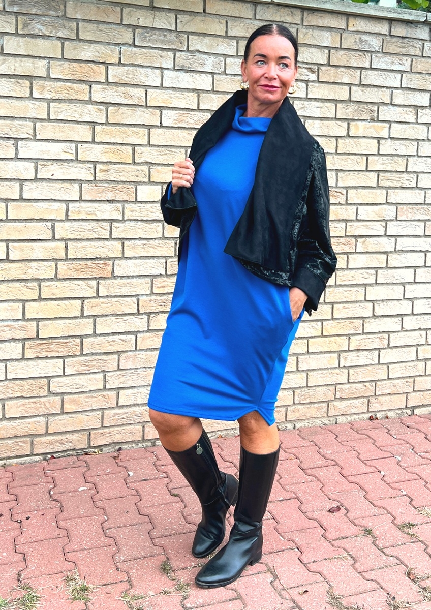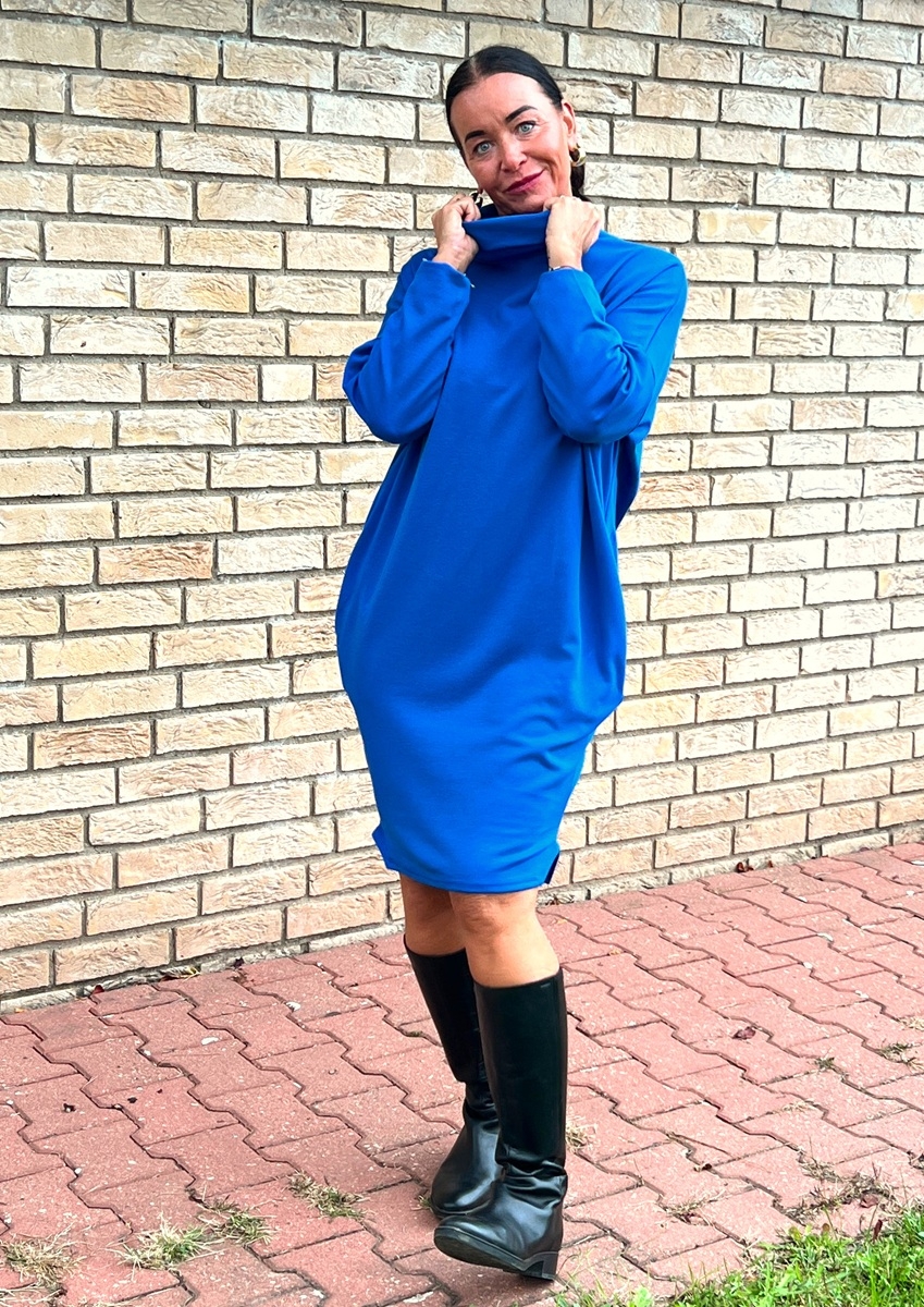Rolákové šaty modré s rukávem