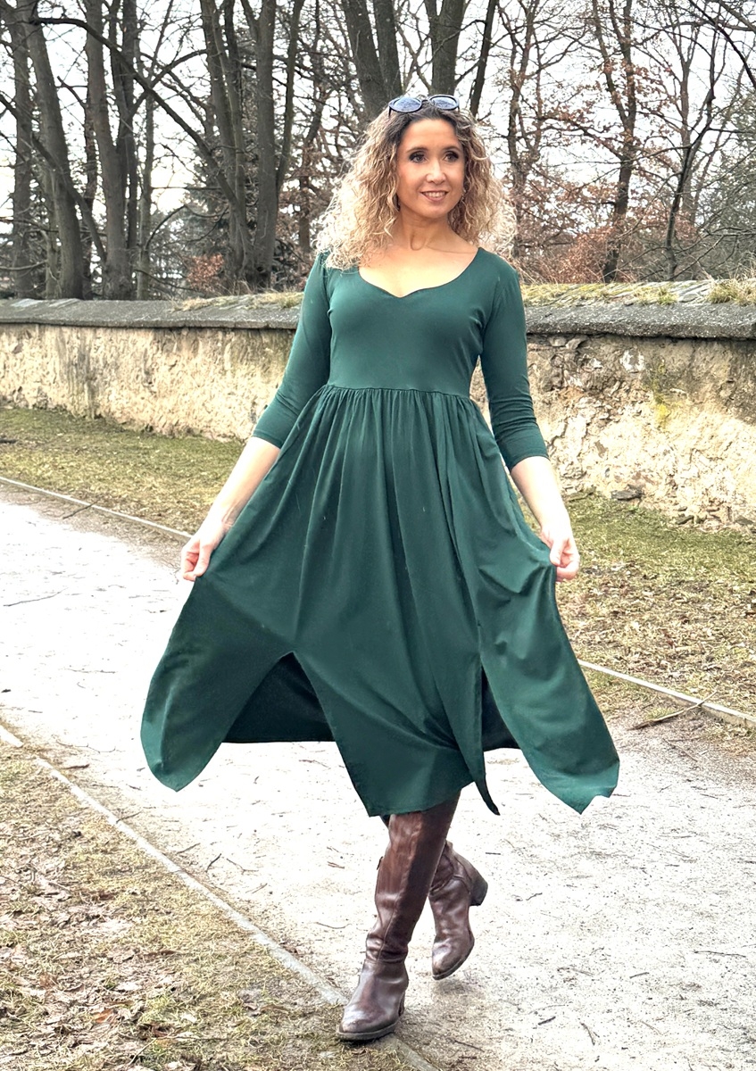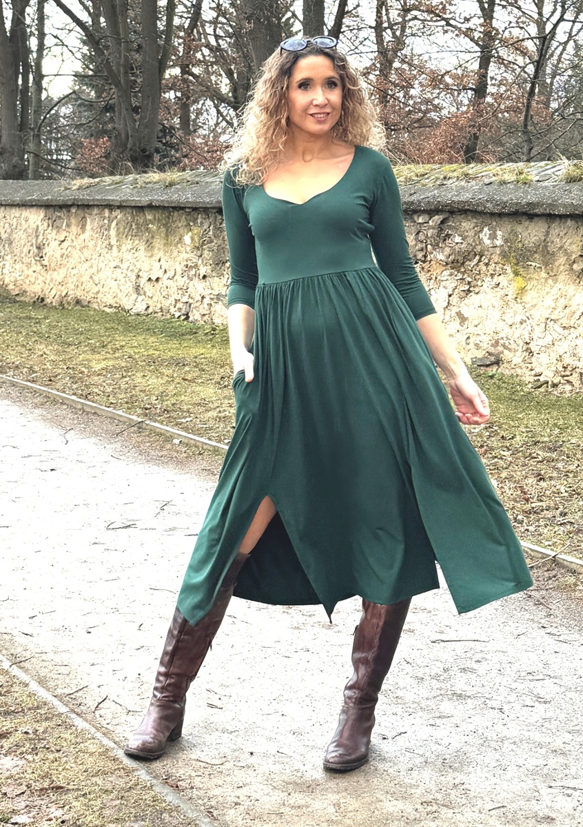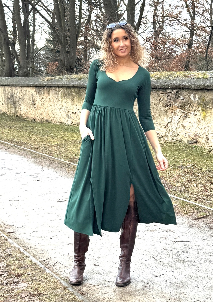 Šaty s rozparky tmavě zelené
