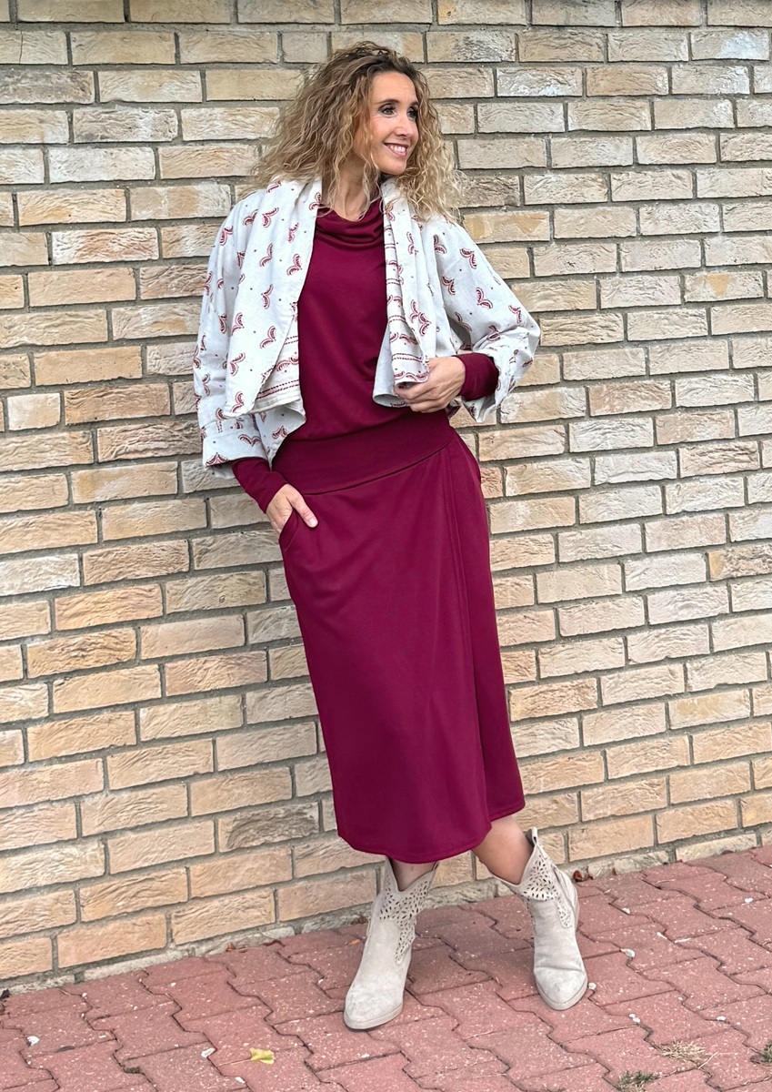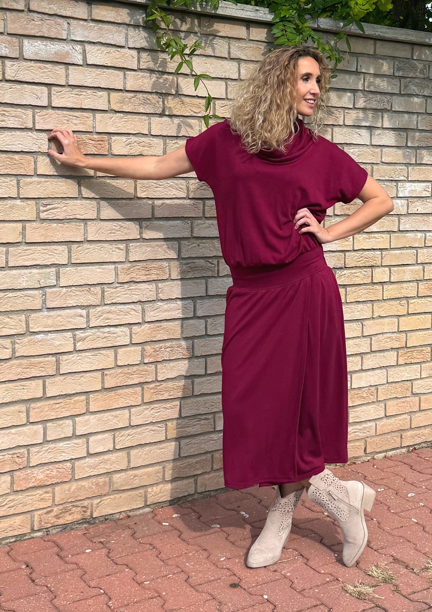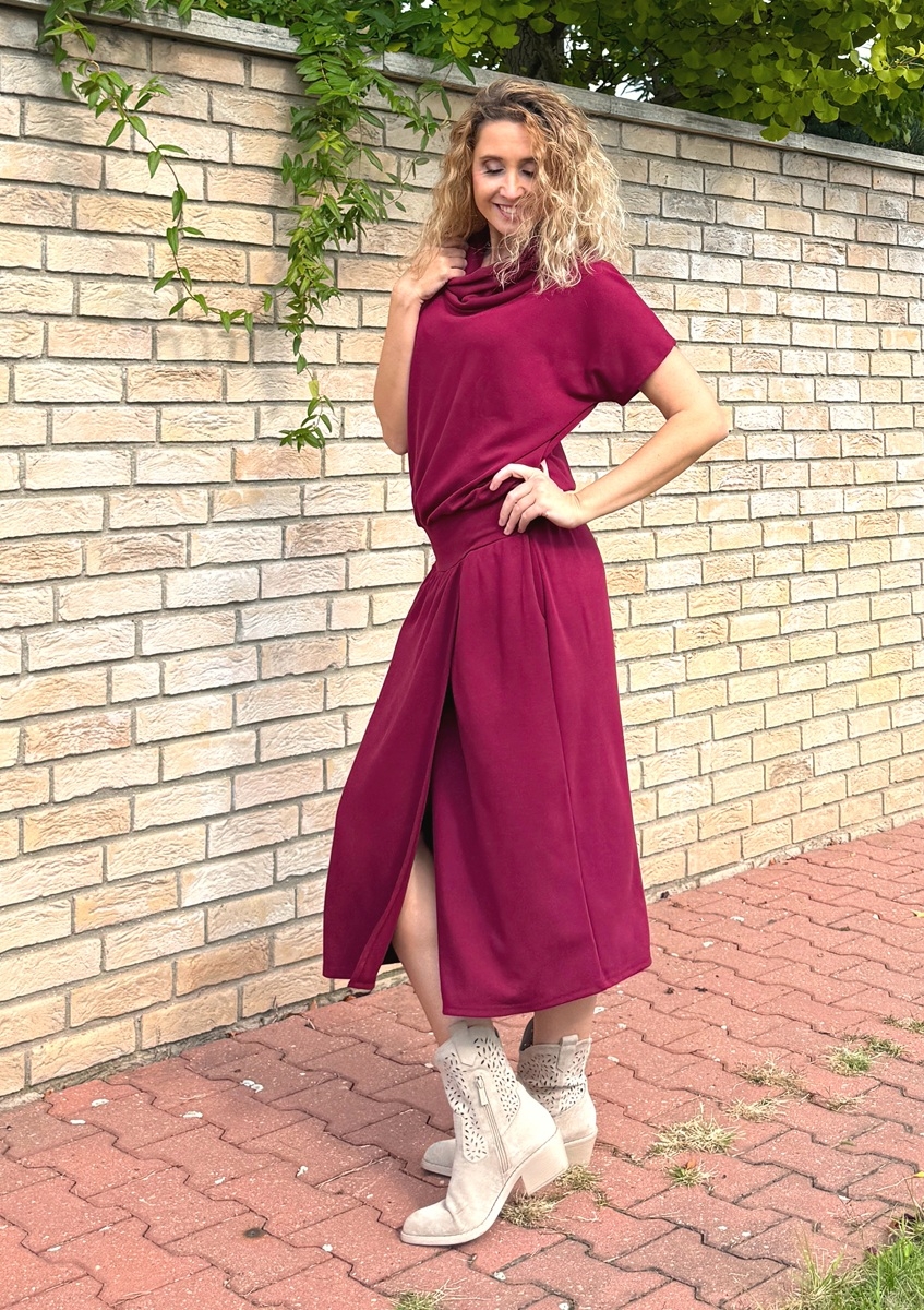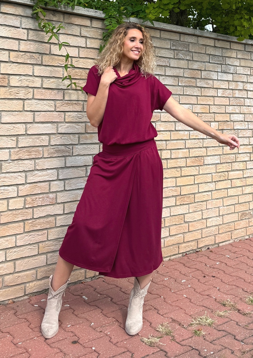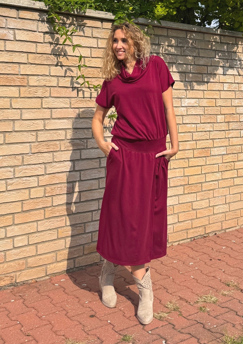 Šaty se zavinovací sukní dlouhé Burgundy
