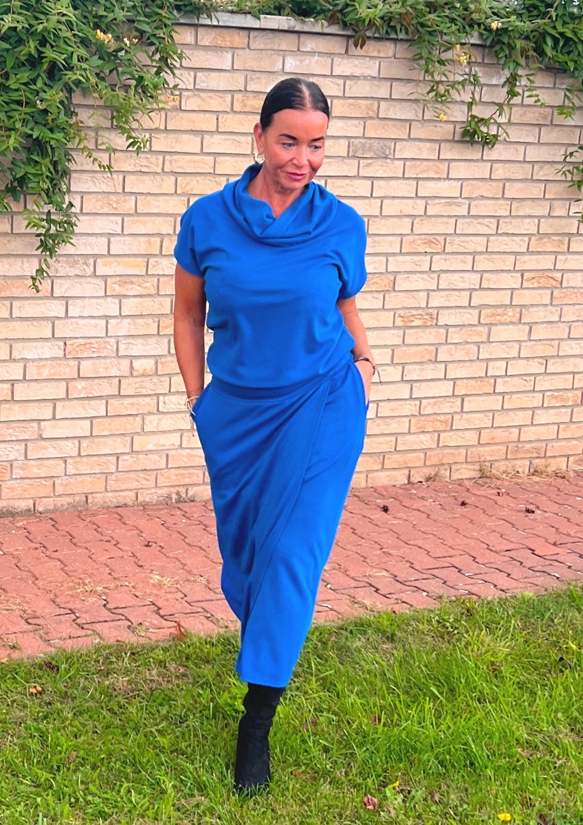 Šaty se zavinovací sukní dlouhé modré