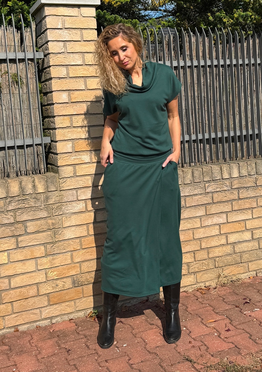 Šaty se zavinovací sukní dlouhé tmavě zelené