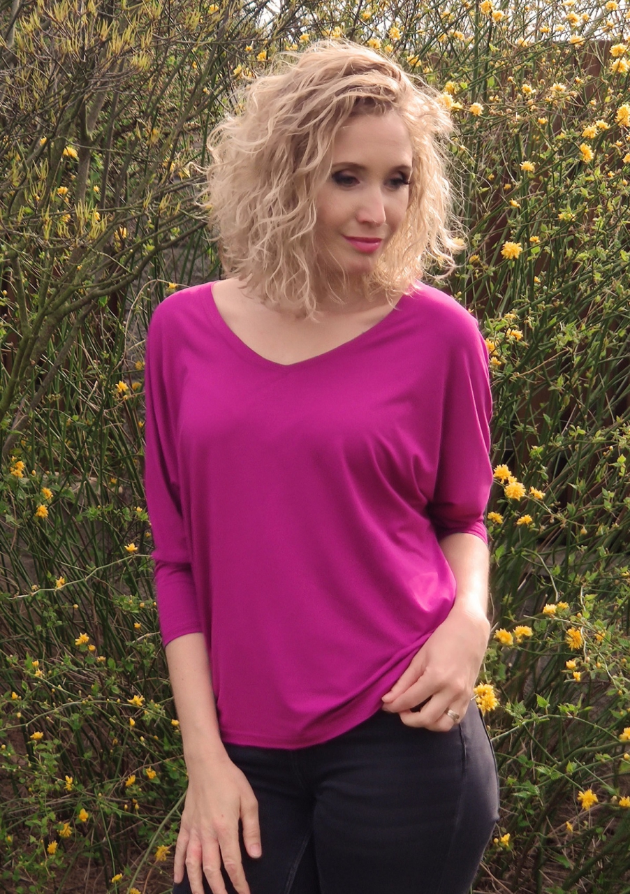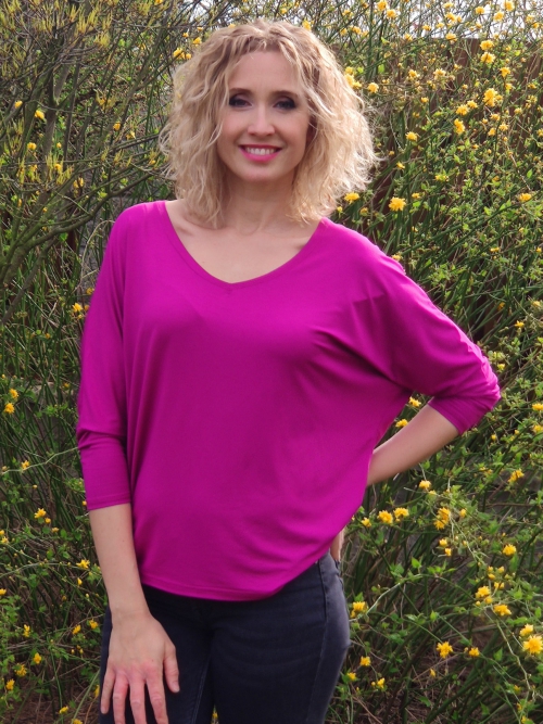 Volná tunika s netopýřimy rukávy z úpletu viskóza/elastan.