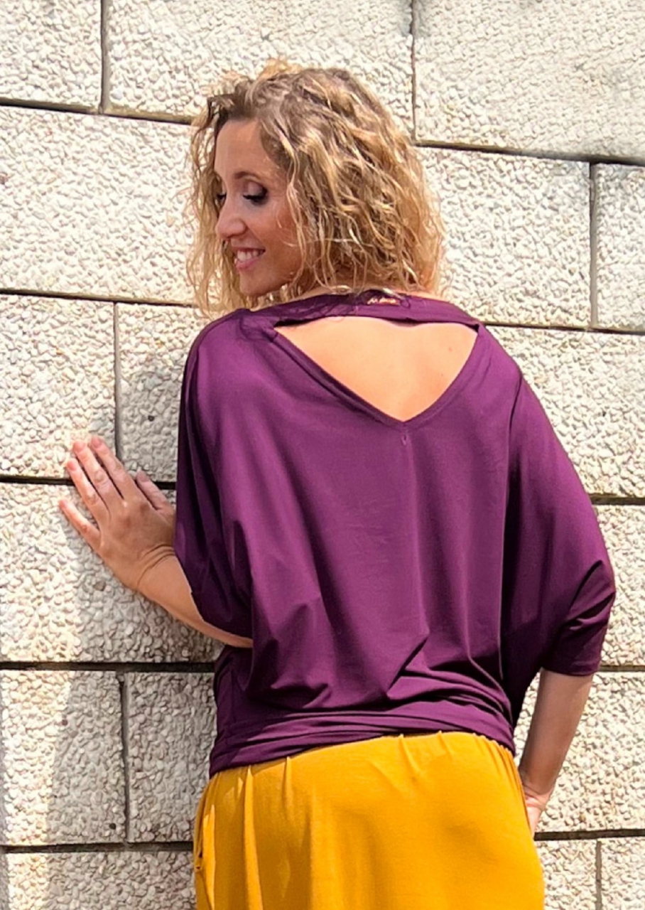 Volná tunika s netopýřimy rukávy z úpletu viskóza/elastan.
