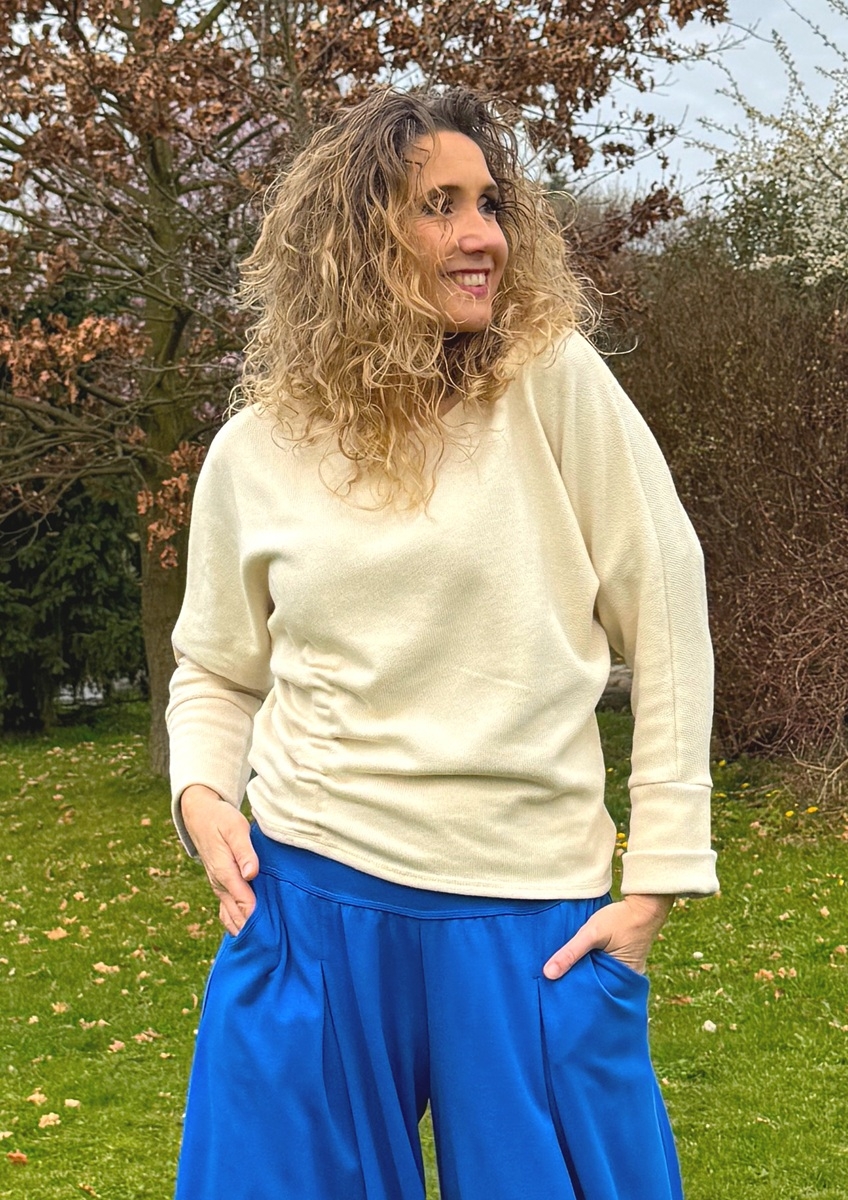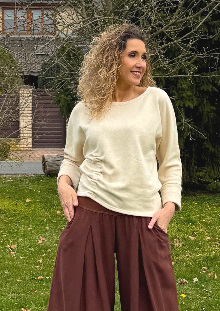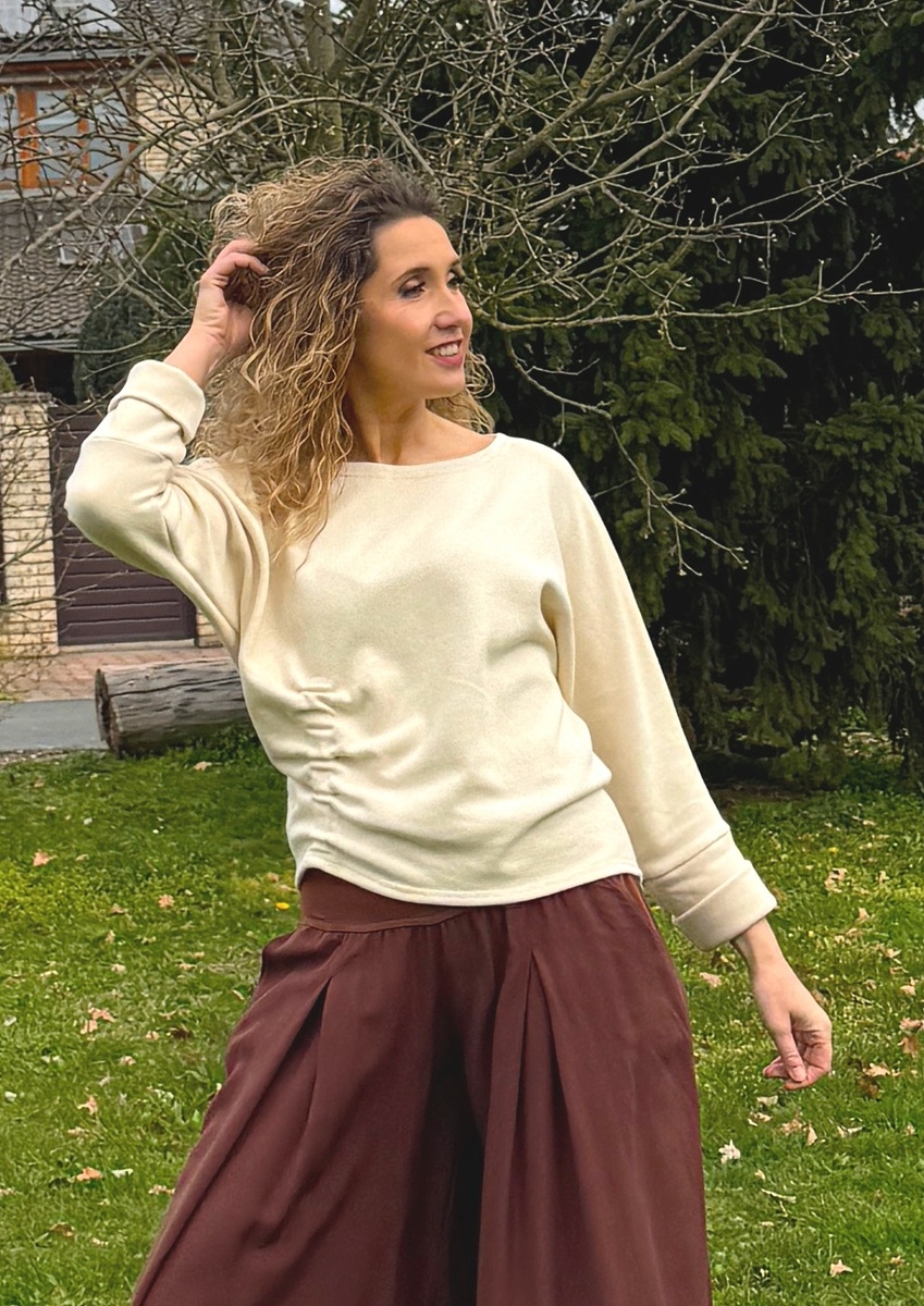 Svetřík bavlněný s nabíráním slonová kost