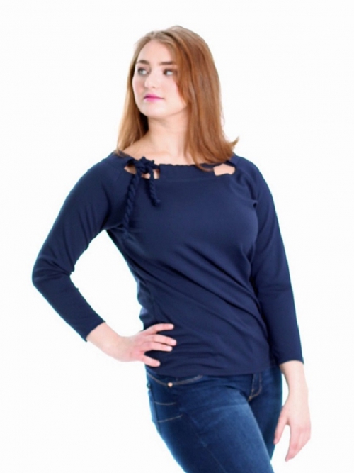 Volná tunika s raglánovými  rukávy v hodinkové délce z úpletu viskóza/elastan. Výstřih je zdobený zapletenou šňůrkou.