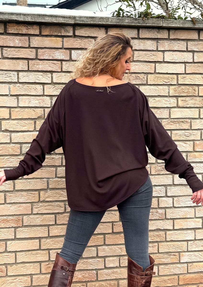 Volná tunika s lodičkovým výstřihem je ušitá ze směsového úpletu (68%vis/28%pes/4%ela).