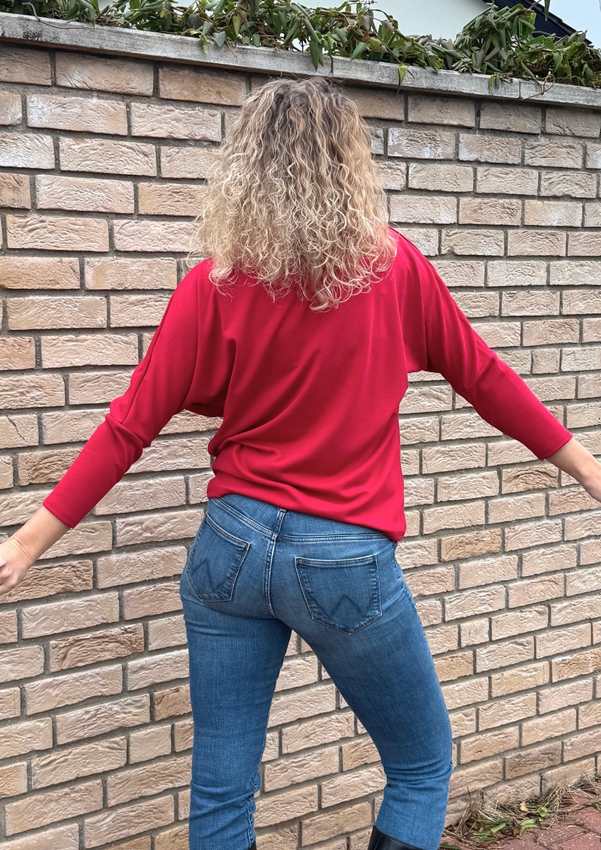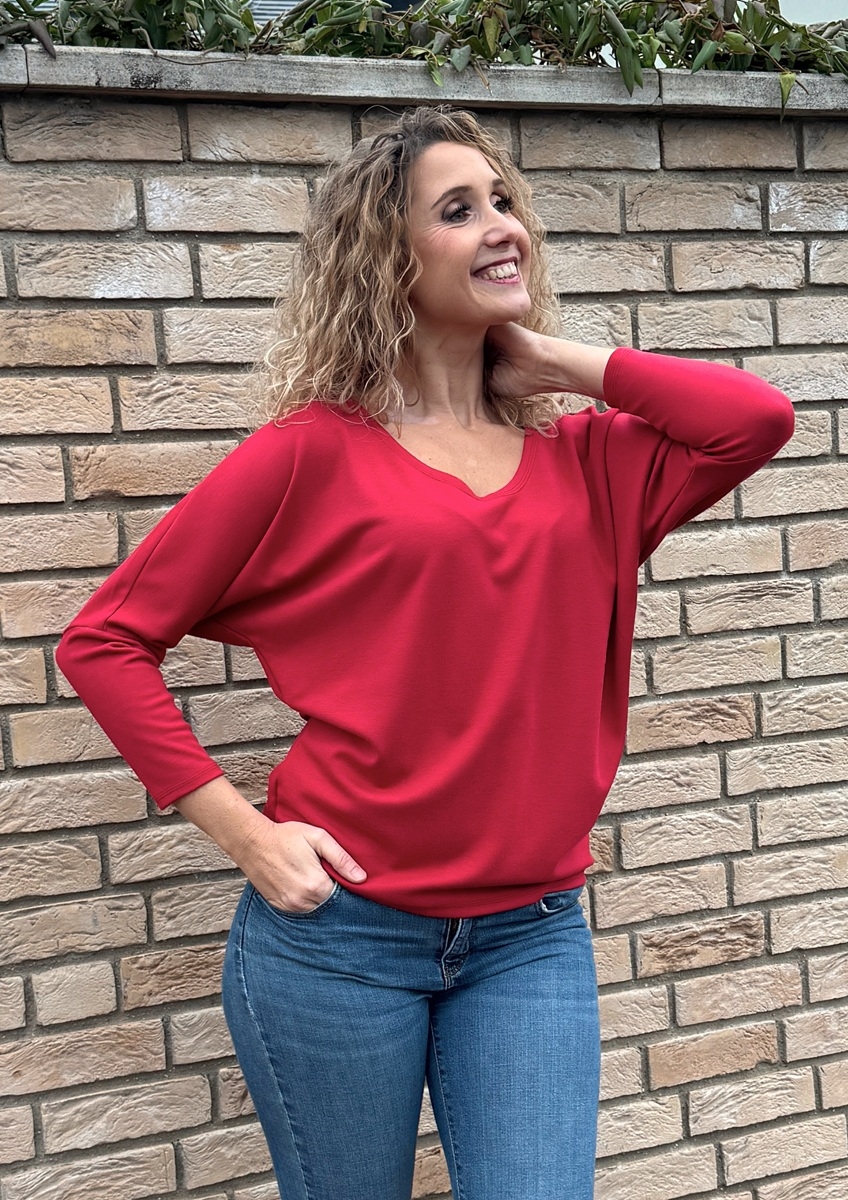 Tunika volného netopýřího střihu s výstřihem do V je ušitá ze středně silného  směsového úpletu (68%vis/28%Pes/4%ela).Rukávy jsou ve 3/4 délce.