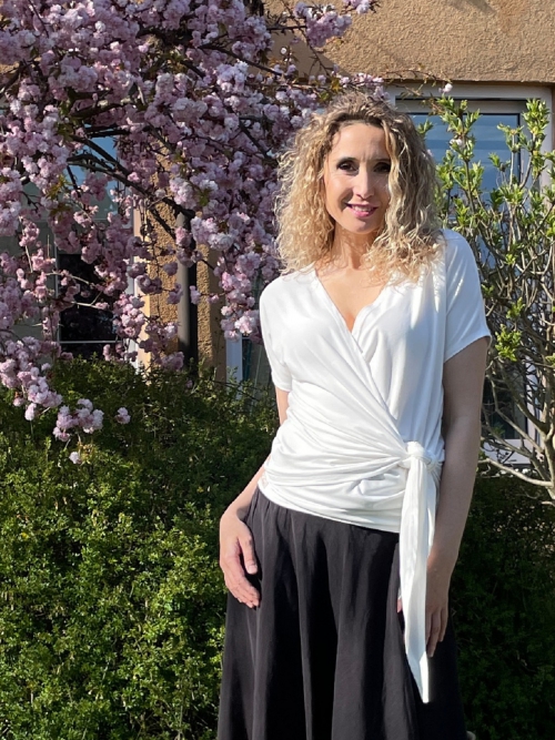 Tunika s volnými rukávy a zavázáním v pase z úpletu viskóza/elastan.