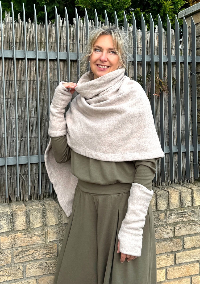 Pončo s nátepníky jsou ušité z fleecové hřejivé 100% bavlny.
