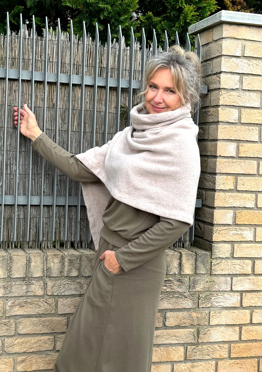 Rolákové pončo bez rukávů fleecové s nátepníky